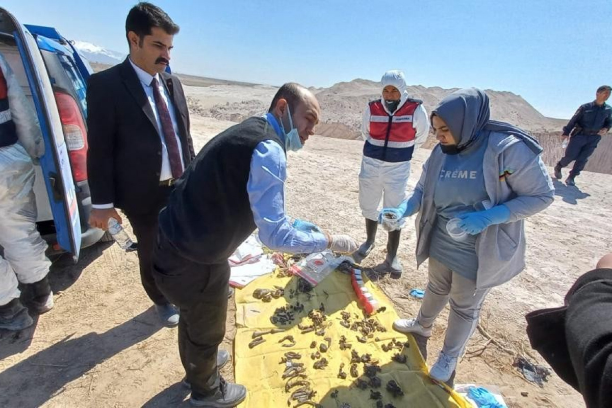 Tarlada inceleme yapan ekipler, 130 metre derinliğinde su kuyusu olduğunu tespit etti. İl Özel İdaresi’nden temin edilen sondaj makineleriyle 20 günlük çalışmanın ardından kuyuda 170 kemik parçası ve saç bulundu.