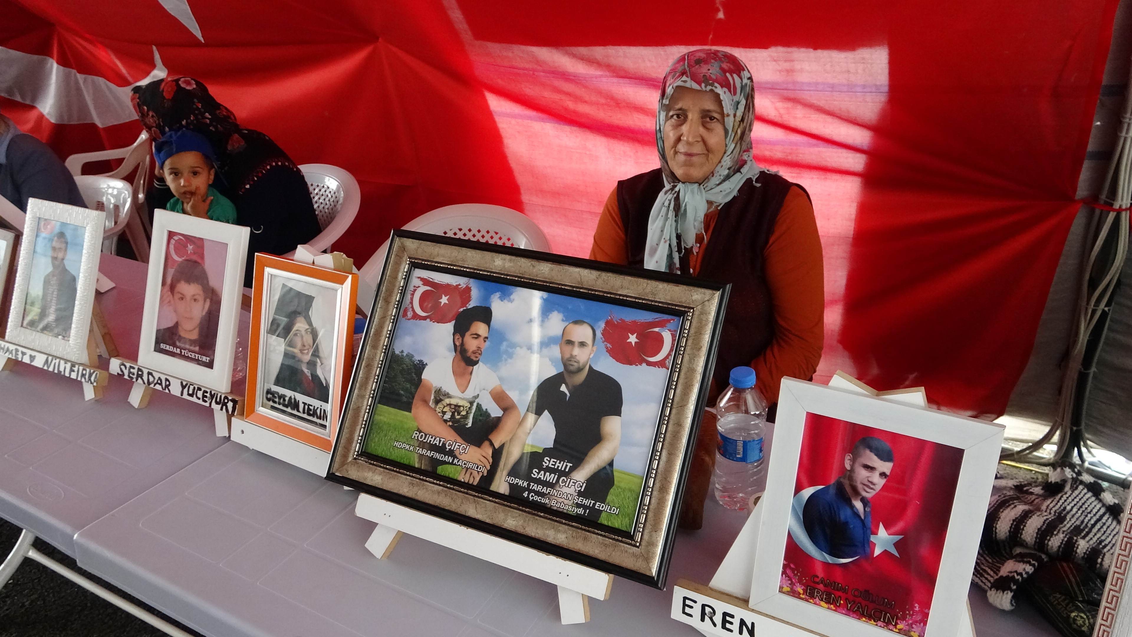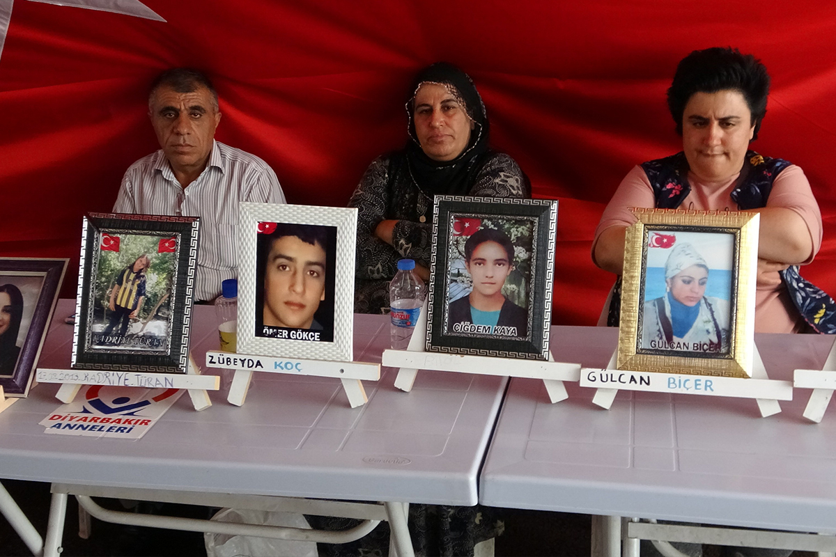 Çocuklarının bölücü terör örgütü PKK mensupları tarafından kaçırıldığı iddiasıyla 3 Eylül 2019’da farklı kentlerden Diyarbakır’a gelen ailelerin HDP il binası önünde başlatılan oturma eylemi bin 23’üncü gününde. 7 yıl önce evladı lise arkadaşları ile birlikte PKK’nın kucağına düştüğünü söyleyen anne Zeliha Yaşa, oğlunun geri gelmesini istedi. Yaşa, “7 yıl önce HDP milisleri tarafından kandırılarak dağa kaçırıldı. Şimdi biz onun için buradayız, onu almadan buradan gitmiyorum. Lise arkadaşlarıyla birlikte bir kız tarafından götürüldü, çocukları bırakıp geri dönmüş. Gittikten 2 ay sonra oğlum telefon açtı, ‘bizi aramayın’ dedi. Ben ağladım ‘ağlama’ dedi. Kim götürdü seni diyorum, ‘boş ver’ dedi. En son Cudi Dağı’nda idi. Dağa gittiğini bildirmek için arayıp haber verdi. O zamandan beri var mı yok mu haber alamadık” dedi.