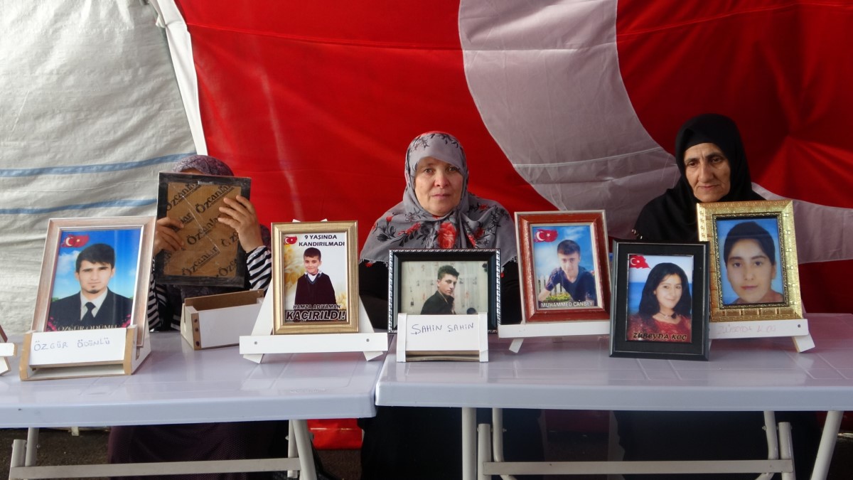 Çocuklarının terör örgütü PKK mensupları tarafından dağa kaçırıldığı iddiasıyla 3 Eylül 2019’da farklı kentlerden Diyarbakır’a gelerek HDP il binası önünde oturma eylemi başlatan ailelerin evlat nöbeti bin 40’ncı gününe girdi. Buruk bayram geçiren aileler, evlatlarına gözyaşları arasında çağrıda bulunarak bayramlarını kutladı.