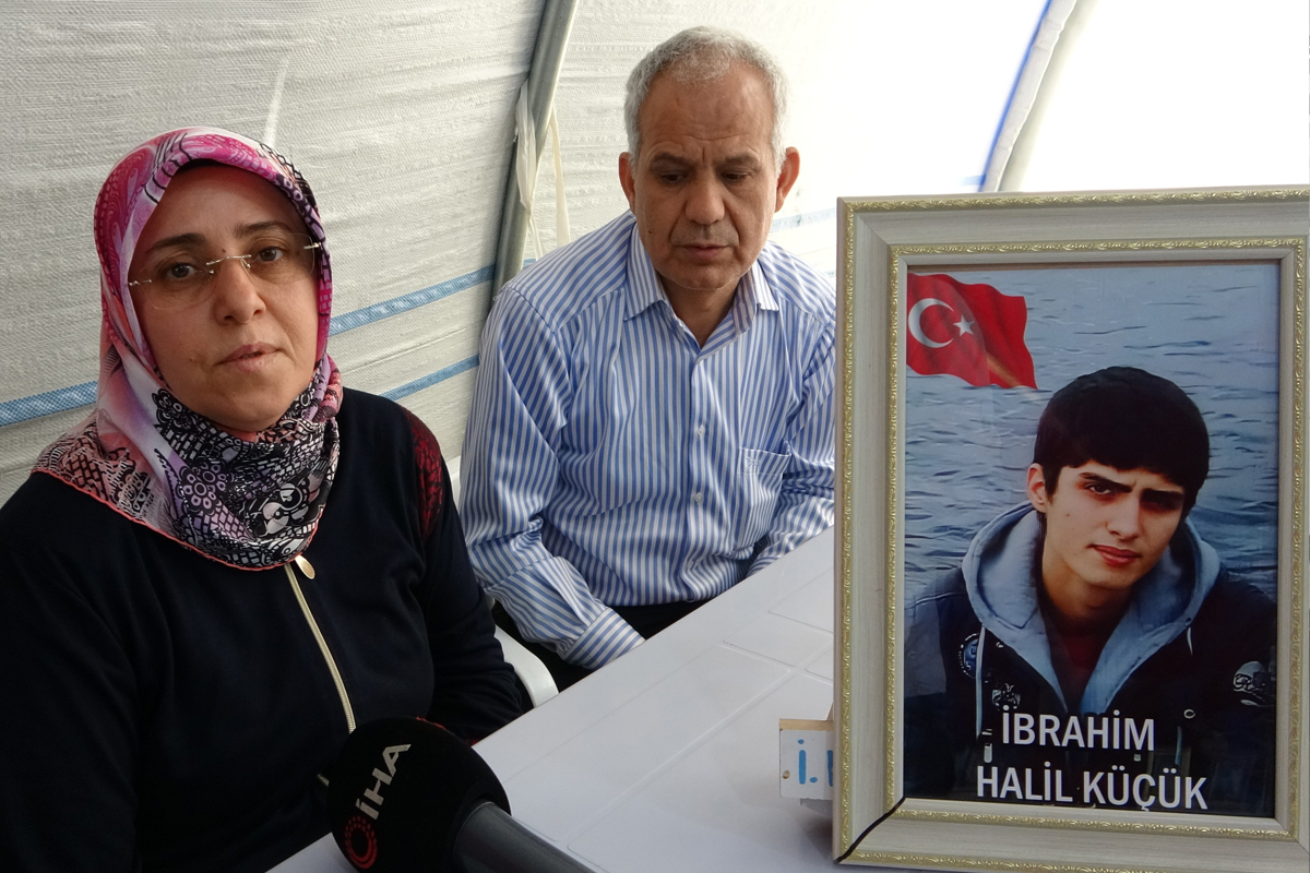 2014’te Burdur Mehmet Akif Ersoy Üniversitesi Hemşirelik Bölümü 3. sınıf öğrencisiyken 20 yaşında kaçırılan oğlu İbrahim Halil Küçük için Gaziantep’ten Diyarbakır HDP İl Binası önüne gelen anne Semra ve baba Talip Küçük, çocuklarını almadan eyleme son vermeyeceklerini söyledi.