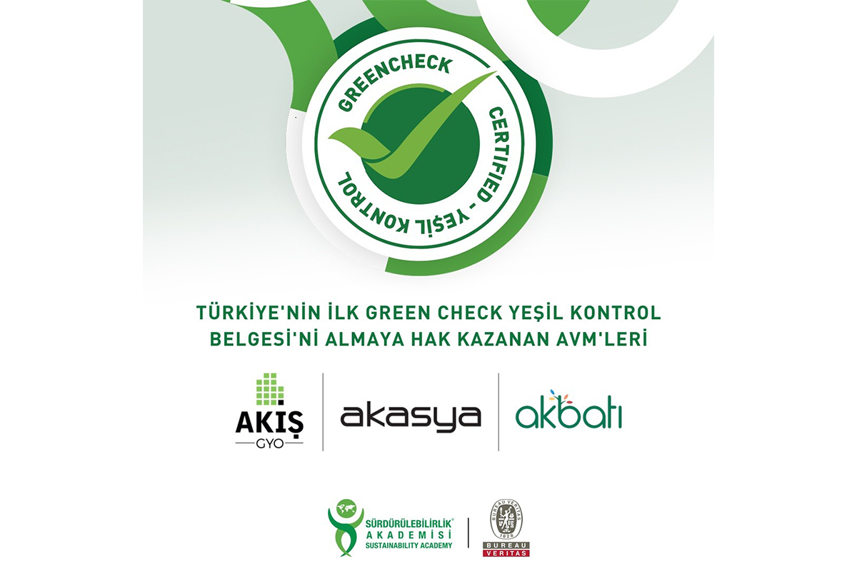 Akiş GYO A.Ş. yatırımlarından olan Akasya ve Akbatı; Çevre Yönetimi, İş Sağlığı ve Güvenliği, İletişim ve Katılım, Müşteri Geri Bildirim Yönetimi, Tedarik Zinciri ve Ortak Koşullar ana başlıkları altında bağımsız bir denetim sonrası Green Check-Yeşil Kontrol Belgesi’ni almaya hak kazandı. Yapılan açıklamaya göre, denetimleri 140’tan fazla ülkede, laboratuvar testlerinden, gözetim ve sertifikasyon hizmetlerine kadar pek çok alanda ve sektörde hizmet veren Bureau Veritas gerçekleştirdi. Sürdürülebilirlik Akademisi tarafından Bureau Veritas iş birliği ile hayata geçirilen Green Check – Yeşil Kontrol Belgesi’ne sahip kurumlar, çevresel etki yönetimi konusunda yaptığı çalışmaları şeffaf bir denetim sürecine açarak, sektörde sürdürülebilir bir rekabet avantajına sahip olmanın yanı sıra, artan müşteri memnuniyeti ve kurumsal itibar konularında da bir adım öne çıktığı belirtildi. Belgenin diğer avantajları arasında ise, bugünün değerleri ile uyumlaştırma, yeni müşteri kazanma, yeni ürün ve hizmet sunabilme yer aldığı bilgisi paylaşıldı.