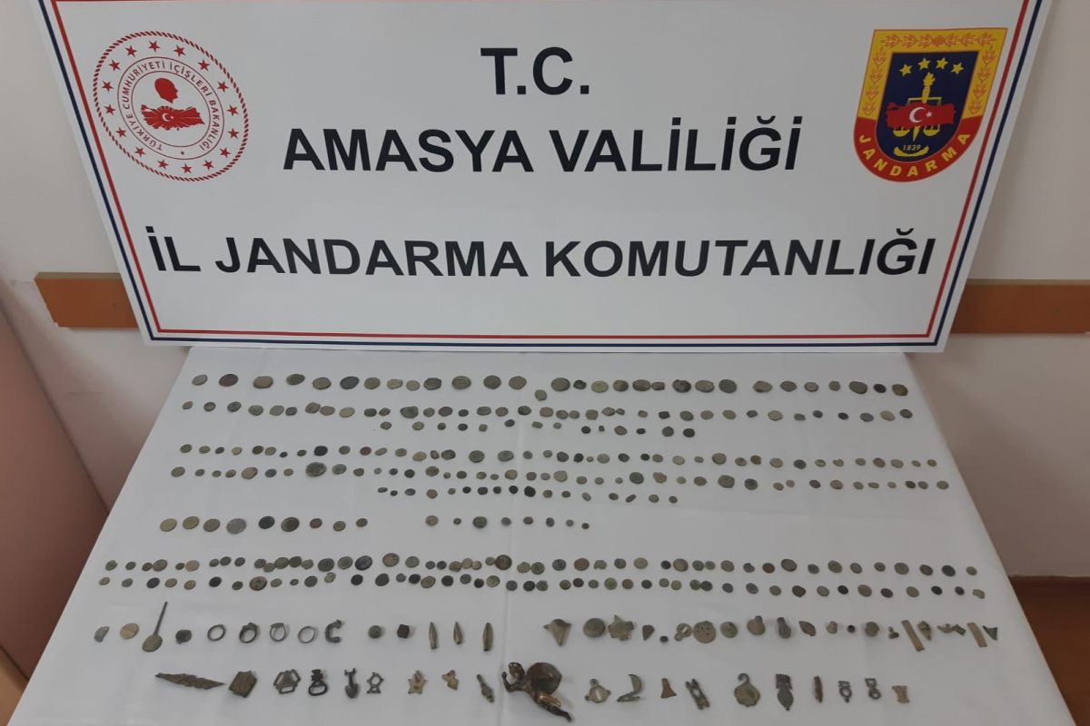 Edinilen bilgiye göre, Amasya İl Jandarma Komutanlığı Kaçakçılık ve Organize Suçlarla Mücadele (KOM) Şube Müdürlüğü ekipleri, Merzifon ilçesinde bir kişide tarihi niteliği bulunan eserler olduğu bilgisi üzerine operasyon düzenledi. Şüpheliye ait evde yapılan aramada Roma, Bizans ve Helenistik dönemlerine ait olduğu değerlendirilen 1 heykel, 1 mühür, 3 ok ucu, 4 yüzük ile 47 çeşitli şekillerde obje ve 291 sikke olmak üzere toplam 347 parça eser bulundu. Ele geçirilen eserler, incelenmek üzere Amasya Müzesine teslim edildi. Şüpheli hakkında adli işlem başlatıldı.