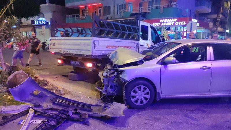 Kaza, Alanya ilçesi Şeyh Şamil Caddesi üzerinde meydana geldi. Edinilen bilgilere göre, Güven Yıldız idaresindeki 33 SER 477 plakalı kamyoneti ile otogara doğru seyir halindeyken sürücünün ismi belirlenemeyen 81 DY 565 plakalı otomobil ara yoldan bir anda caddeye çıkmasıyla çarpıştı. Kamyonete orta kısmından vuran otomobil orta refüjdeki tabelayı da yerinden söktü. Çevredeki vatandaşların ihbarı üzerine olay yerine sağlık ve polis ekipleri sevk edildi. Kamyonetteki bulunan ve ismi belirlenemeyen bir kişi yaralı olarak Alanya Eğitim ve Araştırma Hastanesine sevk edilirken otomobil sürücüsünün olay yerinde firar ettiği öğrenildi. Kaza anı ise çevredeki bir işyerinin güvenlik kameralarına yansıdı. Görüntülerde cadde üzerinde ilerleyen kamyonete ara yoldan çıkan otomobilin çarptığı ve çevredeki vatandaşların yardıma koştuğu görülüyor.