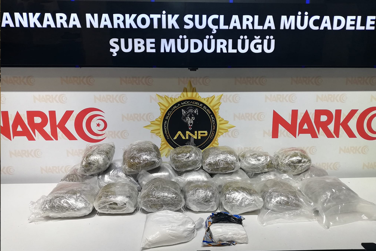 İstanbul’dan Ankara’ya yüklü miktarda uyuşturucu getirileceği ihbarı üzerine Ankara Emniyet Müdürlüğü Narkotik Suçlarla Mücadele Şube Müdürlüğünce 21 Haziran Salı günü Kahramankazan ilçesi Akıncı Gişeler uygulama noktasında durdurulan bir araçta arama yapıldı. Yapılan aramada 10 kilo 500 gram eroin ve 1 kilo 500 gram kokain ele geçirildi. Gözaltına alınan 4 şüpheli 22 Haziran Çarşamba günü adliyeye sevk edildi. Şüpheliler, “uyuşturucu ve uyarıcı madde ticareti yapma veya sağlama” suçundan tutuklandı.