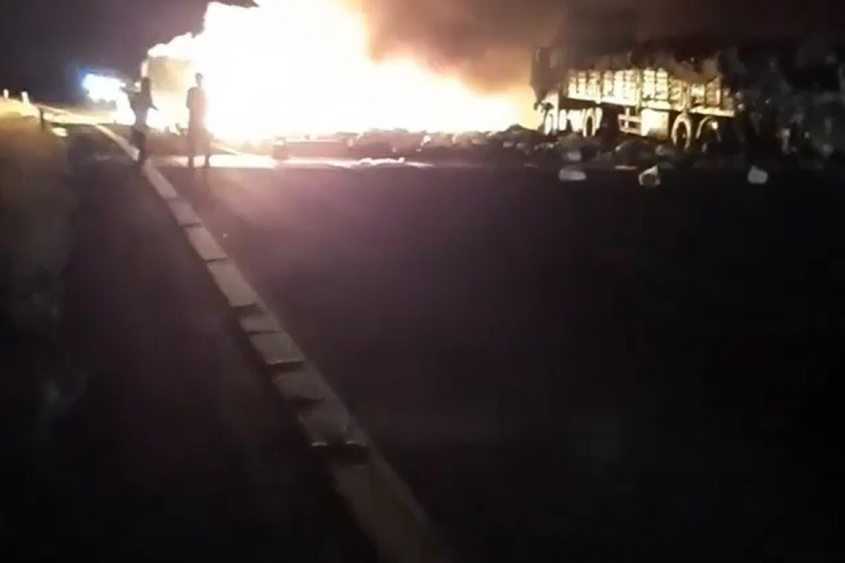 Kaza, Ankara ile İstanbul’u birbirine bağlayan Anadolu Otoyolu Kahramankazan mevkiinde meydana geldi. Edinilen bilgilere göre, C.Ö. kontrolündeki 27 AHT 285 plakalı iplik yüklü tır ile H.B idaresindeki 27 Y 9480 plakalı karpuz taşıyan tır çarpıştı. Çarpışma sonucu iplik taşıyan tır alev aldı. Yangın kısa sürede büyürken, tır alev topuna döndü. Çevredeki sürücülerin ihbarı üzerine olay yerine itfaiye, polis ve sağlık ekipleri sevk edildi. İtfaiye ekiplerinin 1 saat süren çalışması sonucunda alevler kontrol altına alınırken, sağlık ekipleri yaralanan tır sürücü C.Ö.’yü yapılan ilk müdahalenin ardından hastaneye sevk edildi. Kaza sonrası otoyolun İstanbul ve Ankara yönünde araç kuyruğu oluştu. Kazayla ilgili inceleme başlatılırken, trafik daha sonra açıldı.