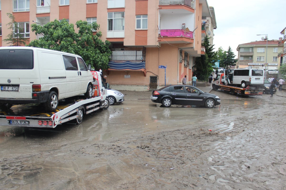 Ankara’da öğle saatlerinde etkisini gösteren sağanak, mahallelerde su baskınlarına neden oldu. Keçiören İzcibaşı Sokak ve 431. Sokak’ta sağanağın meydana getirdiği sel sonrasında dükkanları, apartmanların giriş katlarını, depoları, kömürlükleri ve otoparkları su bastı. Vatandaşları isyan ettiren sağanaktan geriye, bir marketin 100 bin liralık zararı, otoparklarda park edilmiş olan otomobiller, depolarda bulunan eşyalar, duvarı çöken daireler ve zarar gören evler kaldı.