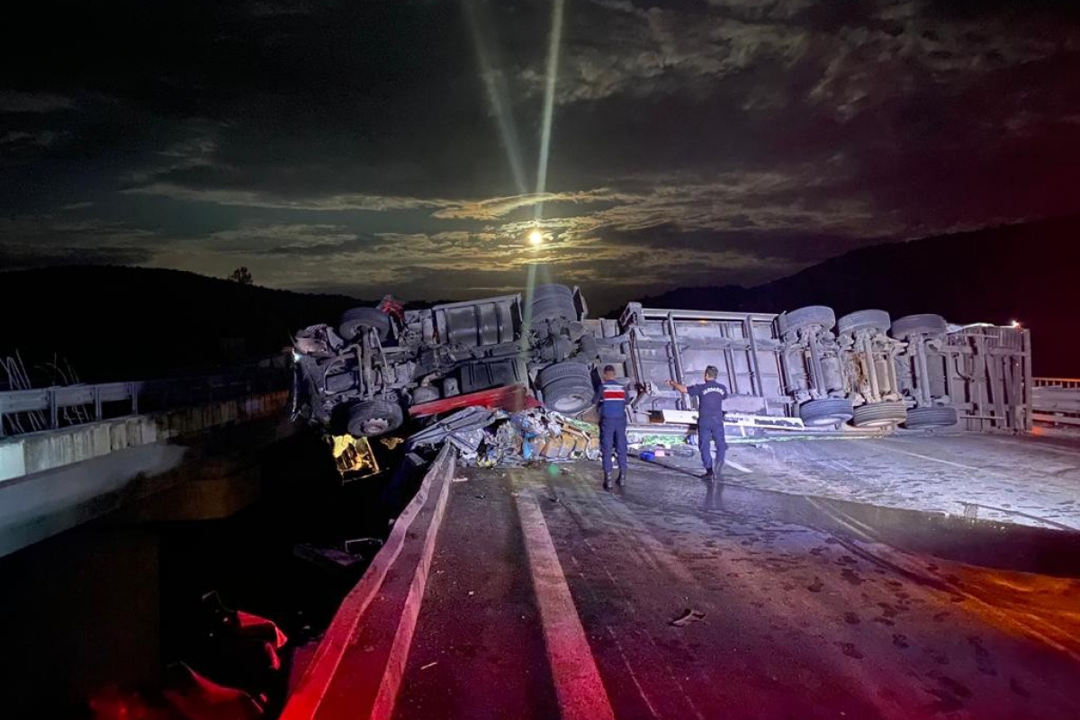 Anadolu Otoyolu İstanbul istikametinden Ankara’ya seyir halinde olan sürücüsünün direksiyon hakimiyetini kaybettiği tır, Çamlıdere mevkiinde devrildi. İhbar üzerine olay yerine Jandarma ve sağlık ekipleri sevk edildi. Kazada tır sürücüsü yaralandı. Yol çift yönlü trafiğe kapatıldı. Ekiplerin devrilen tırı kaldırma çalışması sürüyor.