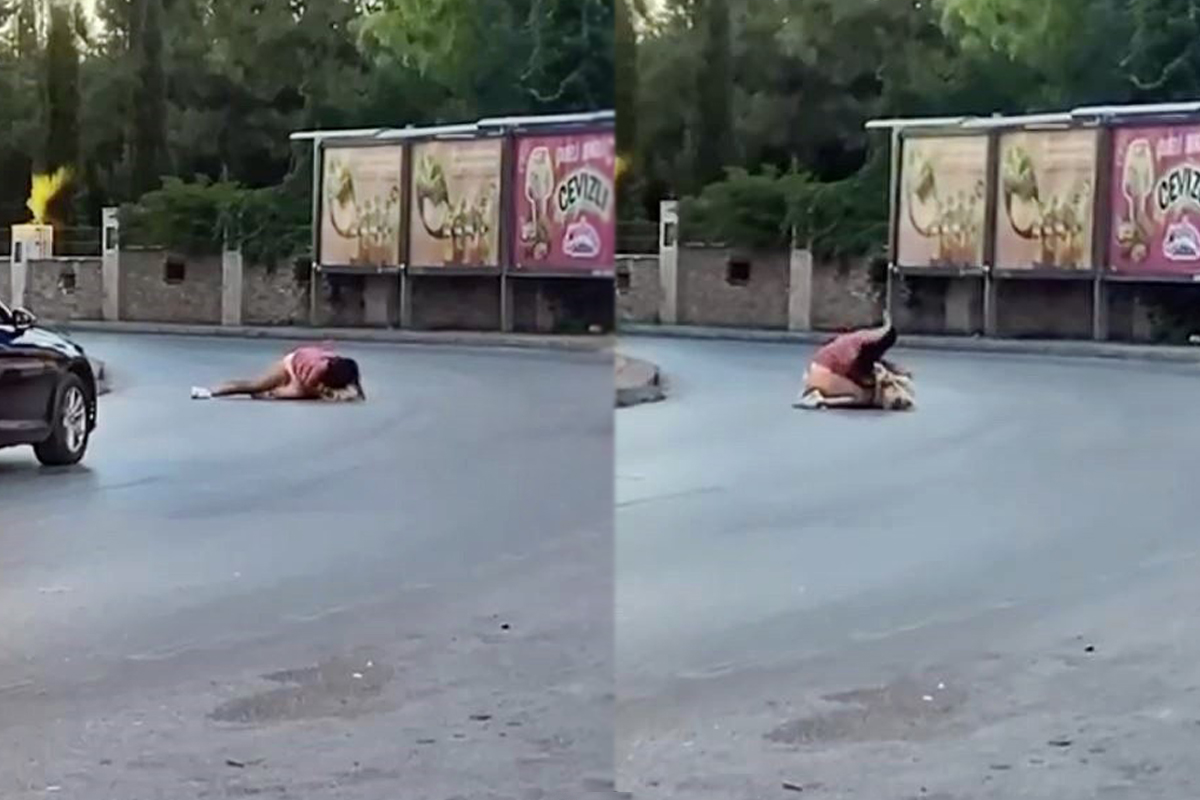 Cadde üzerine taşan kavgada, kadınlardan biri diğerini darp etmeye başladı. Yola yatırdığı kadının kafasını defalarca tokatlayan kadın, ayağa kalkıp tekmelemeye devam etti. Kavga esnasında yoldan geçen bazı sürücülerin umursamadan yollarına devam ettiği görüldü.