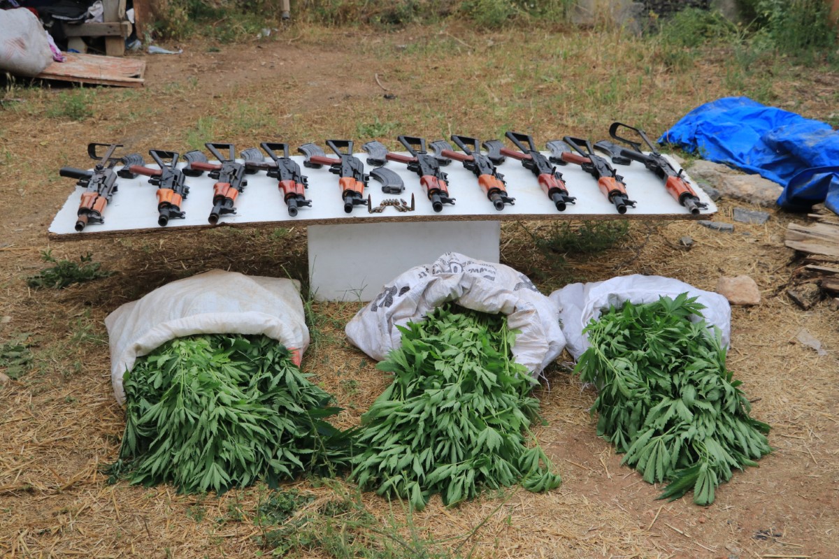 M.A.B.’nin Sarıçam ilçesine bağlı Dağcı Mahallesi’ndeki çiftlik evinde ise odunluk içerisindeki sandığa gizlenmiş 10 adet Kalaşnikof piyade tüfeği, 14 mermi ele geçirildi. Tarlada ise 720 kök kenevir bitkisi ele geçirildi.