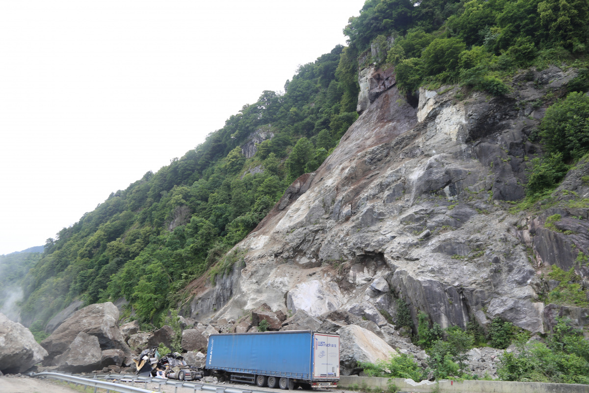 Artvin’in Hopa ilçesi Karadeniz Sahil Yolu Esenkıyı Tüneli mevkisin de dün meydana gelen heyelanda yamaçtan kopan dev kayalar, Gürcistan’a gitmek üzere yol kenarında park halinde bekleyen 2 tırın üzerine düştü. İhbar üzerine bölgeye AFAD, HOPAK, AKUT, polis, jandarma ve sağlık ekipleri sevk edildi. Heyelanda Azerbaycan uyruklu tır sürücüsü Şahmar Kerimov (38) yaşamını yitirdi, Özbekistan uyruklu bir kişi de yaralandı. Ekiplerin çalışması sonucu şoförün cansız bedenine ulaşıldı.