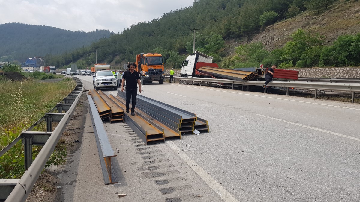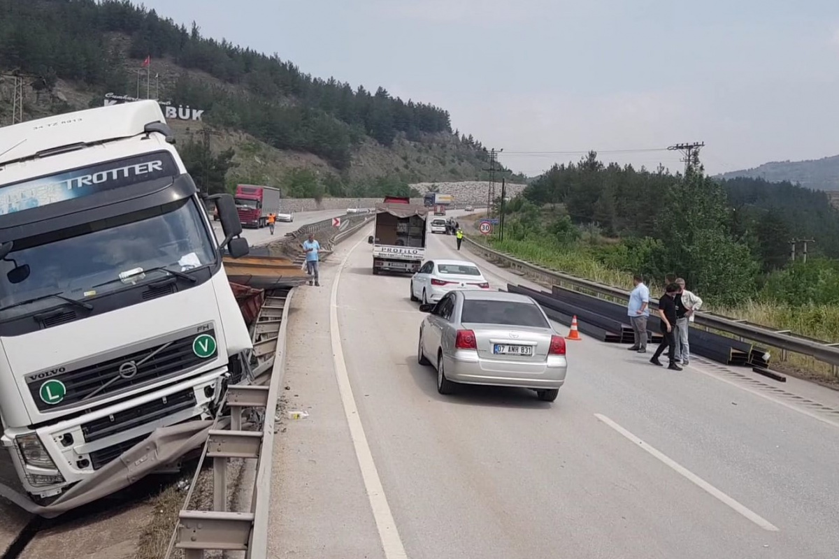 Kaza, Karabük-Eskipazar karayolu Keman Oyman Sanayi Sitesi mevkiinde meydana geldi. Ferhat Y. idaresindeki 34 TZ 8913 plakalı demir yüklü tır, sürücüsünün kontrolünü kaybetmesi sonucu bariyerleri kırarak refüje girdi.