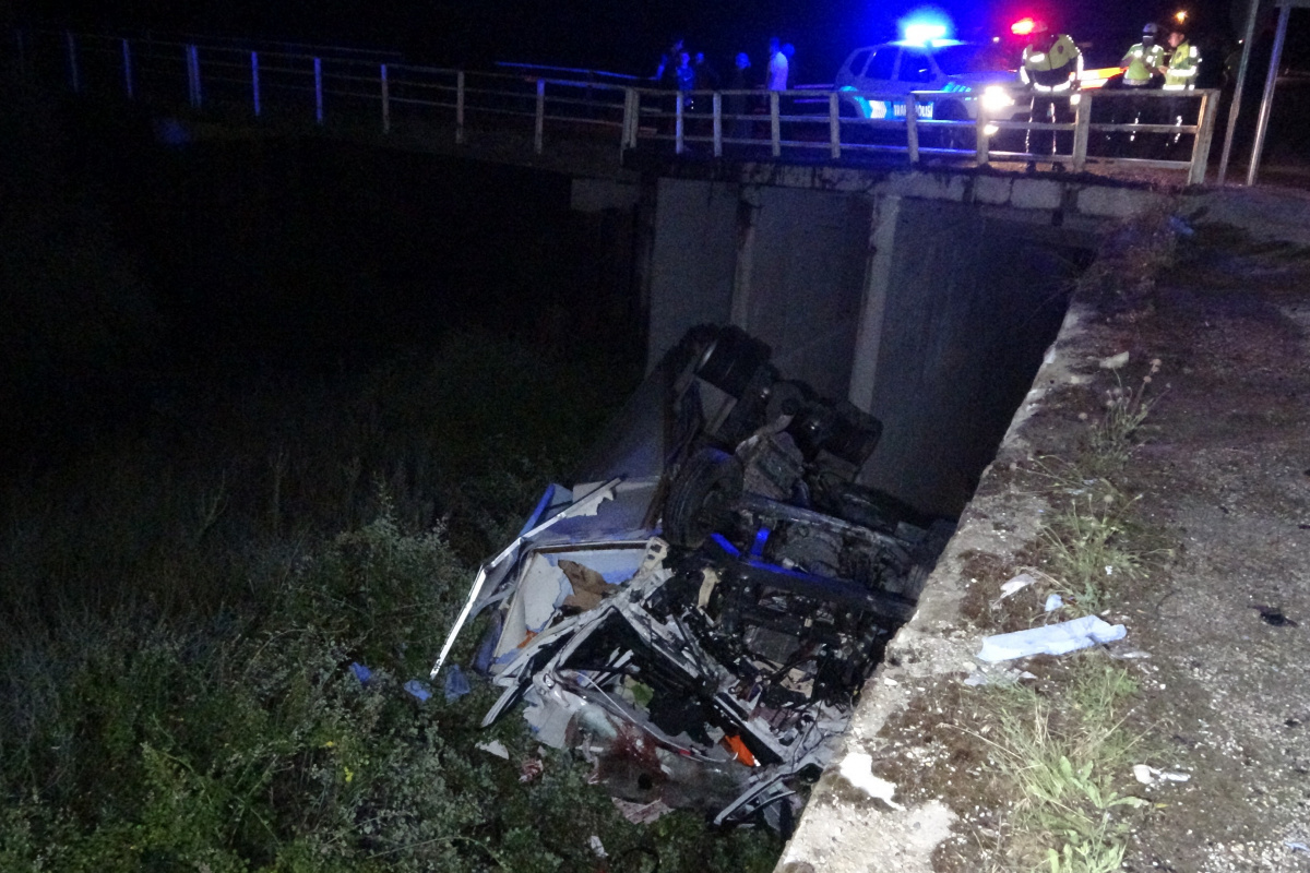 Çarpmanın etkisiyle N.Y. kontrolündeki kamyon 10 metre yükseklikten yol kenarında bulunan dereye uçtu. İhbar üzerine olay yerine polis, jandarma ve sağlık ekipleri sevk edildi.