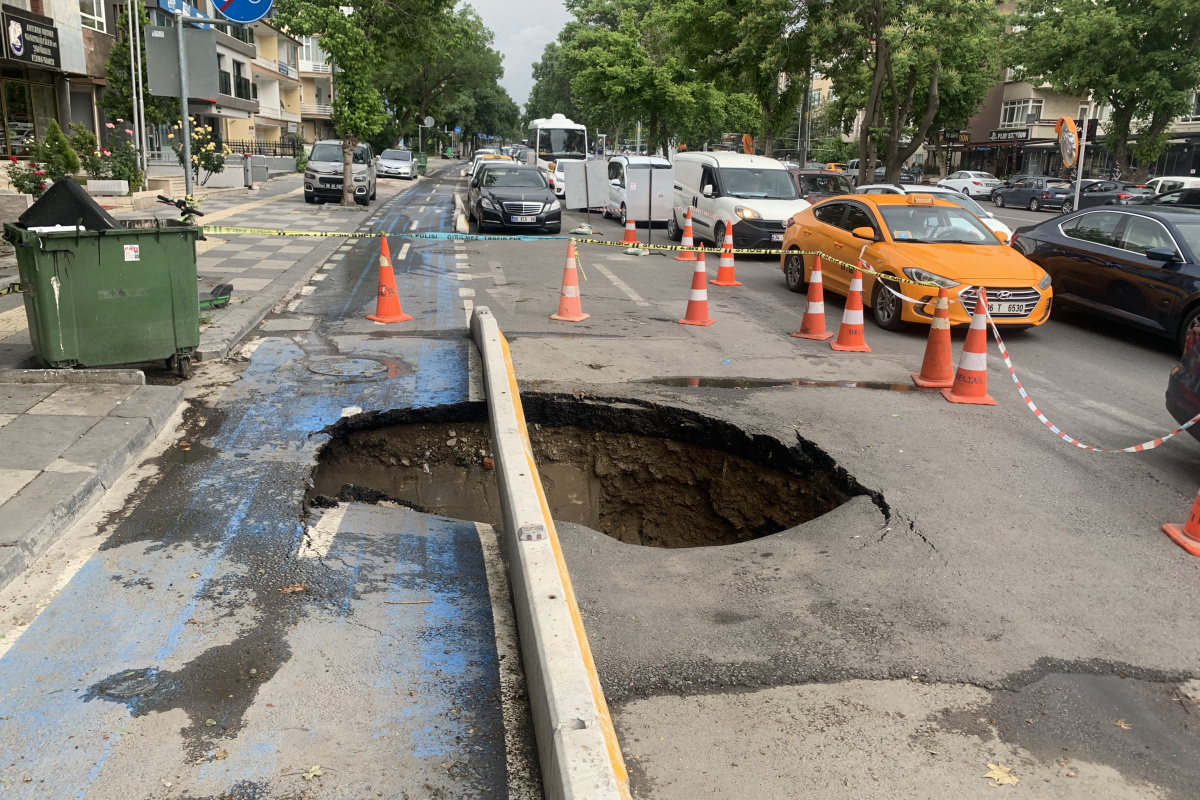 Ankara’nın Çankaya ilçesi Beşevler Mahallesi Mareşal Fevzi Çakmak Cadde’si üzerinde yağmur suları nedeni ile yol saat öğleden sonra 1 sıralarında çöktü. Oluşan çukur nedeni ile yolun bir kısmı güvenlik şeridi çekilerek trafiğe kapatıldı.