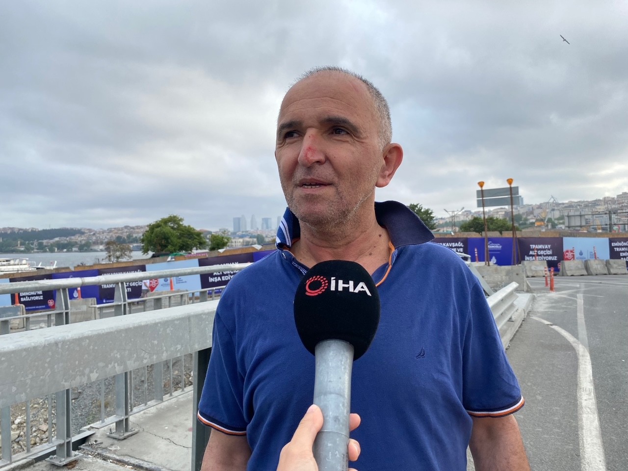 Kavgayı ayırmaya gelip bijon anahtarıyla saldırıya uğrayan esnaf Haydar Kambur, “ Adam taksiciye saldırdı, yanında bayan vardı. Bir saldırdı, iki saldırdı en son dayanamadım ben de gittim olaya müdahil oldum. Adam vazgeçmedi hala saldırıyordu. Taksici de canının derdine düştü adam. Kadın yolcu korkmuştu, inemedi araçtan zaten. Ben hemen koştum demirlerden atlamaya çalıştım. Elim yarıldı, kanadı. Demirler sivriydi geçemedim” diye konuştu.