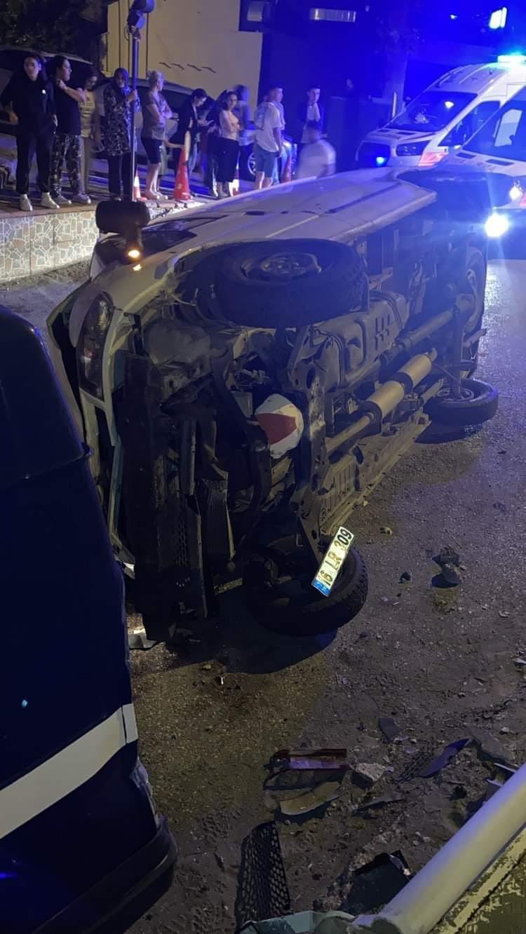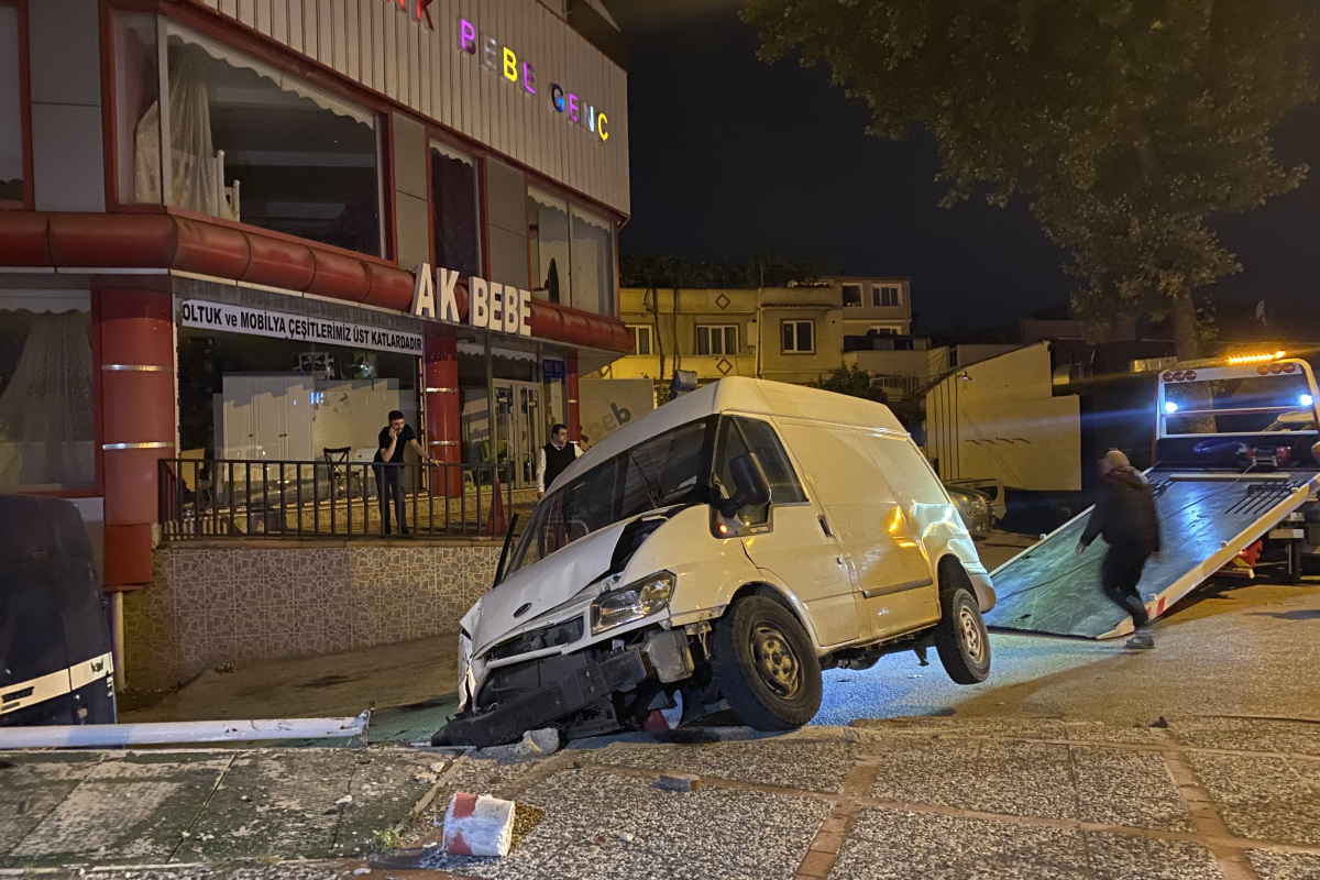 16 LR 309 plakalı panelvan araç bir işyerinin duvarına çarparak yan devrilerek zor durabildi.