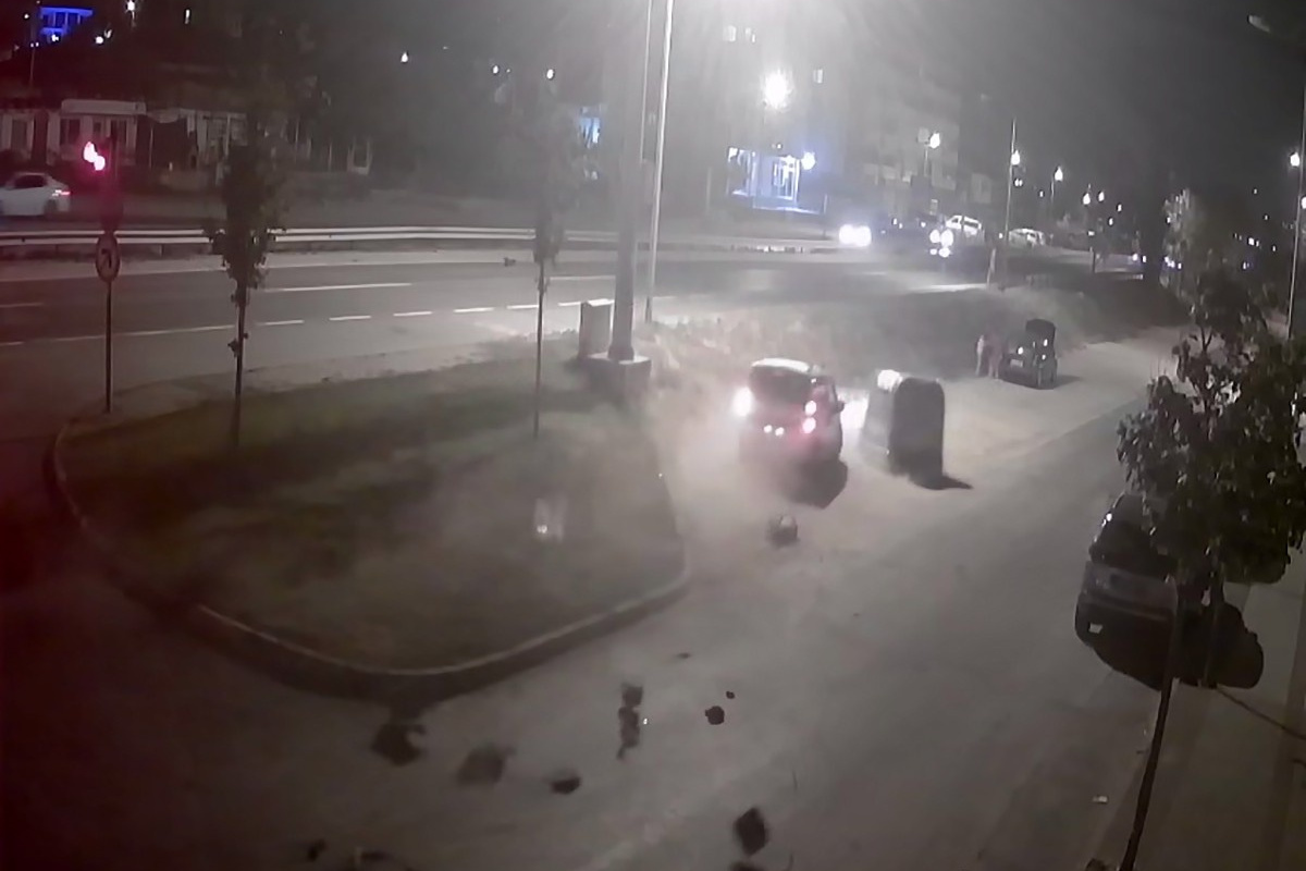 Feci kaza güvenlik kamerasına saniye saniye yansıdı. Görüntülerde Demirrenk’in elinde çöplerle dışarı çıkıyor. Bu sırada hızla gelen araç, Demirrenk’e çarpıyor.