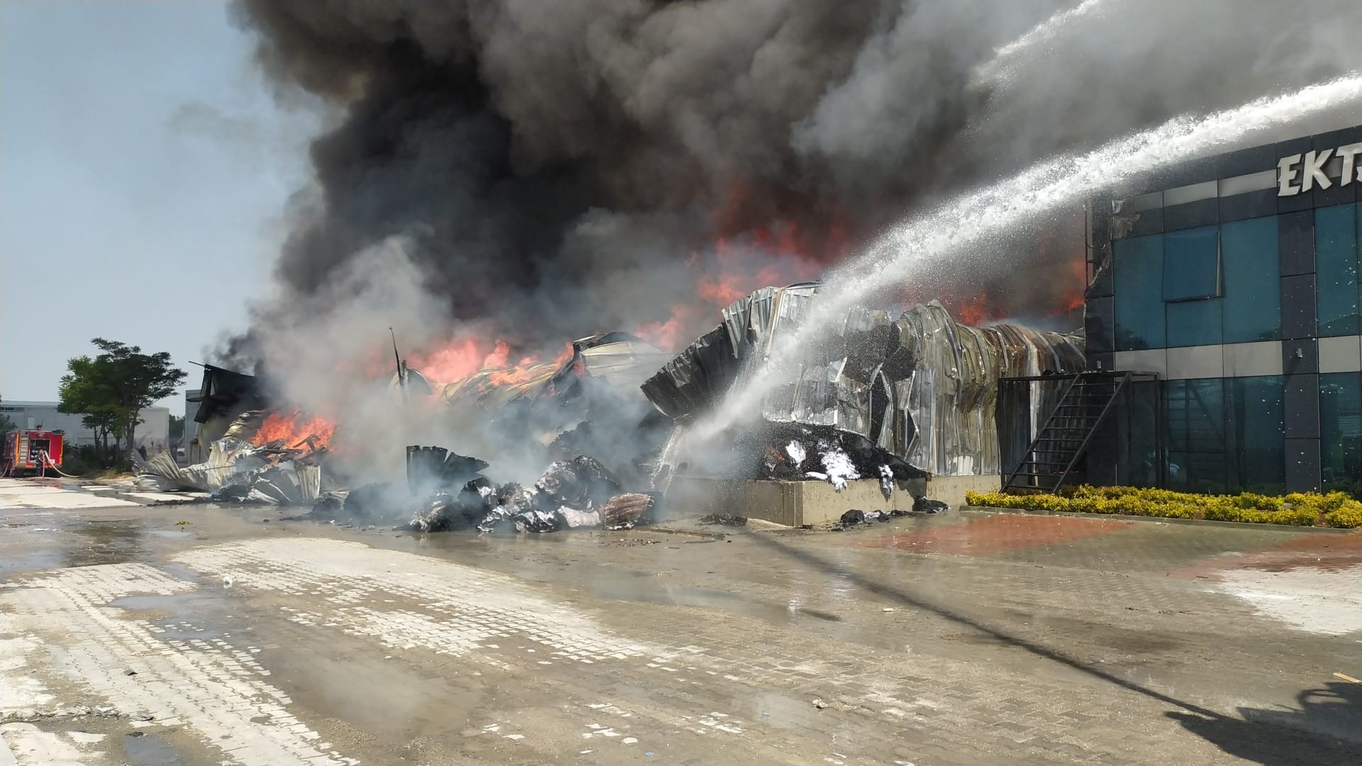 Çatıda kaynak yapılırken başlayan yangına müdahale devam ediyor