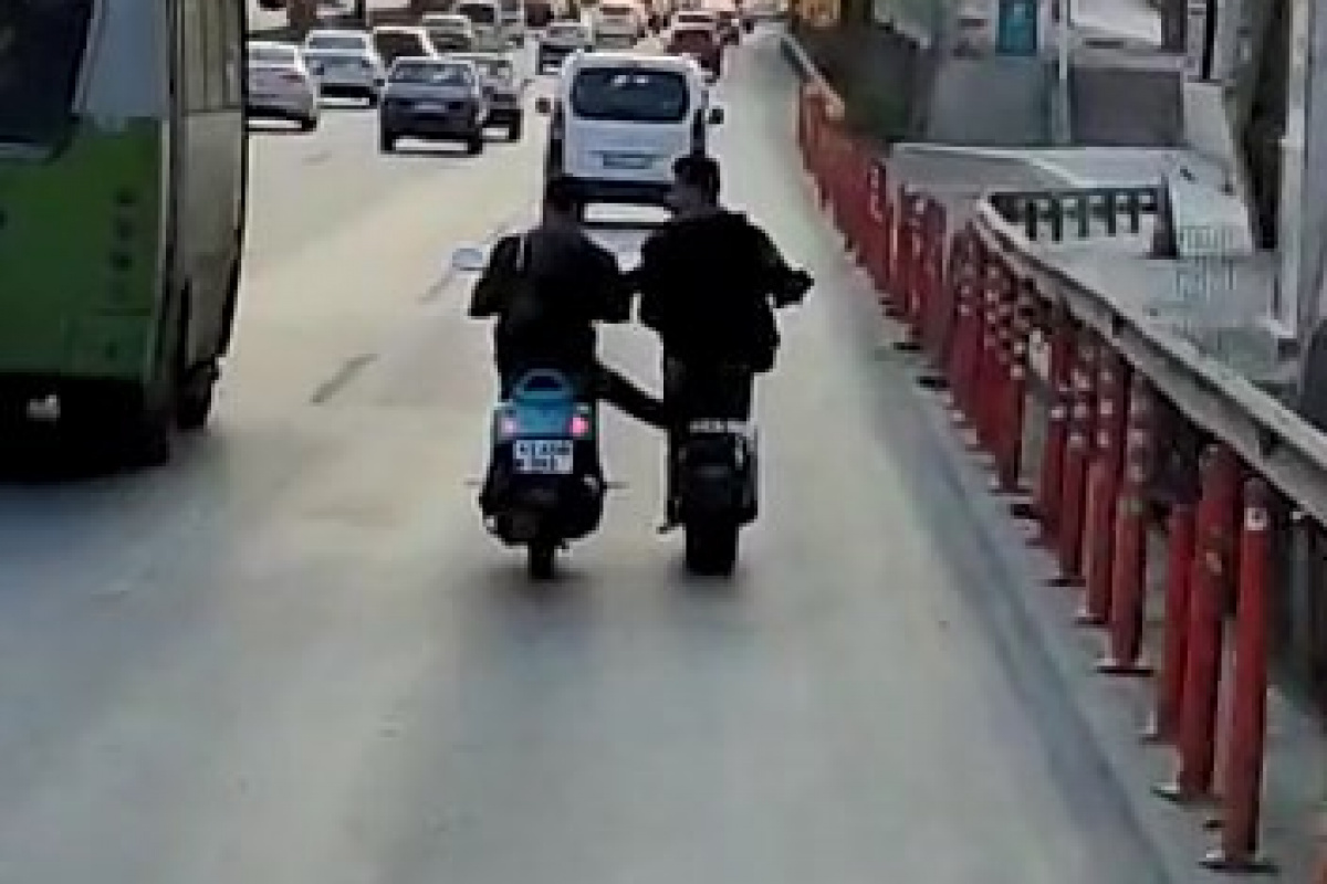 Olay, İzmit ilçesi D-100 karayolu İstanbul istikametinde meydana geldi. Edinilen bilgiye göre, motosikletiyle seyir halinde olan sürücü, bir başka motosikleti sürücüsü üzerindeyken dengede tutmaya çalıştı. Kaskları da bulunmayan gençler, trafiği ve kendi canlarını tehlikeye atarak D-100 Karayolu’nda tehlikeli şekilde ilerlemeye devam etti. Yüreklerin ağıza geldiği anlar, bir başka araçta bulunan vatandaş tarafından saniye saniye kaydedildi.