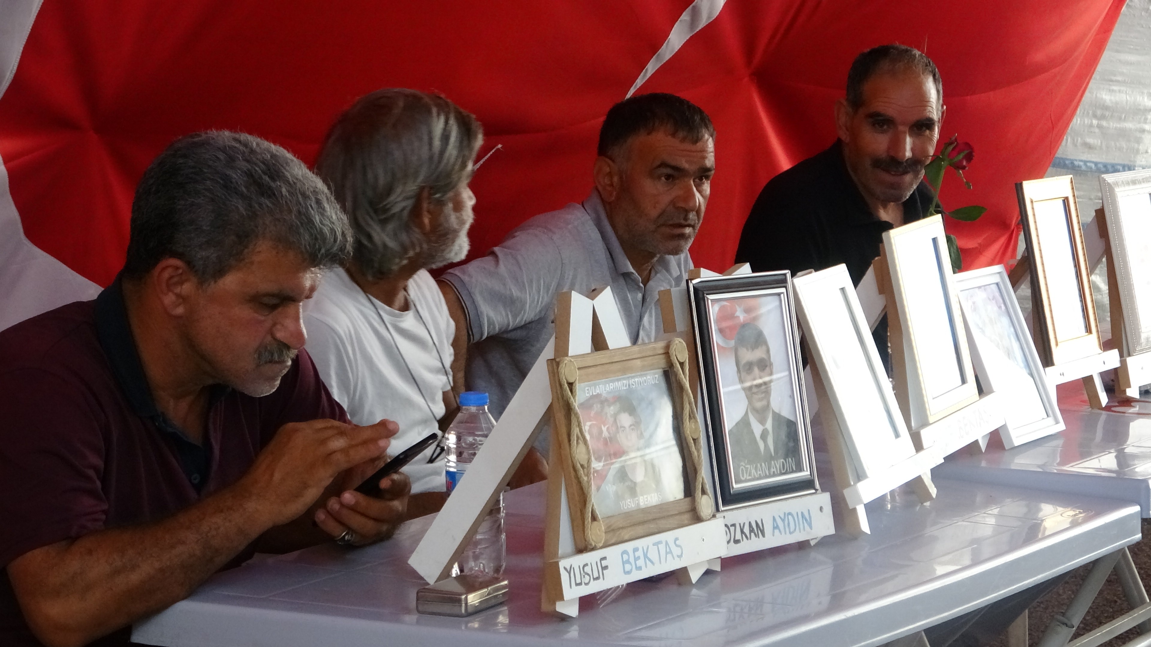 Çocuklarının terör örgütü PKK mensupları tarafından dağa kaçırıldığı iddiasıyla 3 Eylül 2019’da farklı kentlerden Diyarbakır’a gelerek HDP il binası önünde oturma eylemi başlatan ailelerin evlat nöbeti bin 44’üncü gününe girdi. Oğlu Yusuf’un 2014’te 16 yaşındayken Siirt’in Şirvan ilçesinde terör örgütü PKK mensuplarınca kandırılarak dağa götürüldüğünü belirten Saadet Ödümlü, oğlu için oturma eyleminde olduğunu söyledi.