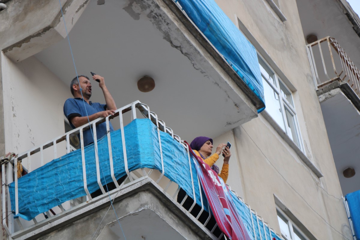 Mahmut Ekinci’yi atlamaktan vazgeçirmek için ekipler seferber olurken, aşağıda toplanan vatandaşlar ve karşı binadaki bazı kişilerin ise cep telefonlarına sarılıp canlı yayın yapma yarışı içerisine girmeleri dikkat çekti.