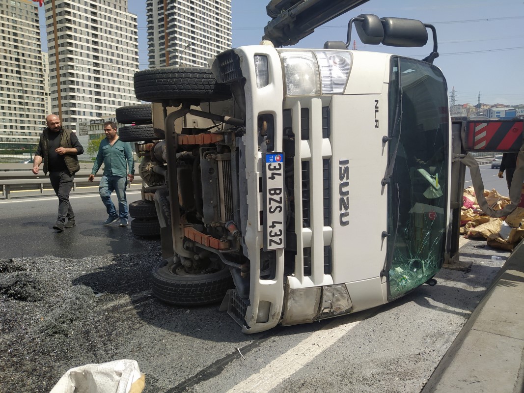 Olay, E-5 Karayolu Haramidere mevkii Avcılar istikametinde meydana geldi. Seyir halindeki metal yüklü kamyon, sürücüsünün direksiyon hakimiyetini kaybetmesi üzerine refüje çarparak devrildi.