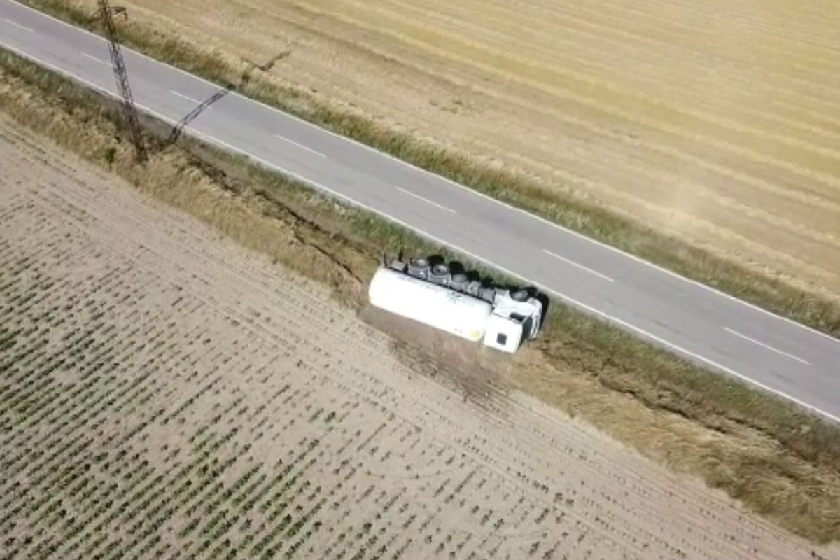 Edirne’de devrilen LPG yüklü tanker paniğe neden oldu