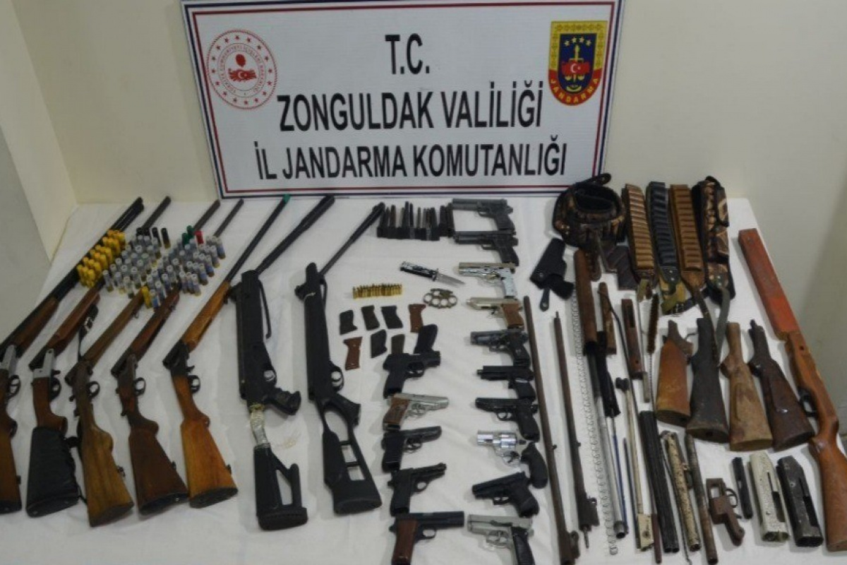 Edinilen bilgiye göre Zonguldak İl Jandarma Komutanlığı ekiplerince, Kdz. Ereğli ilçesi Üveyikli köyünde bir şahsın ikametine adli makamlardan alınan arama kararına istinaden operasyon yapıldı. Jandarma ekipleri evde yaptıkları aramada 5 adet ruhsatsız tabanca, 10 adet kurusıkı tabanca, 5 adet av tüfeği, 2 adet havalı tüfek, 33 adet tabanca fişeği, 74 adet av tüfeği fişeği, 1 adet muşta, 1 adet kesici alet ve 4 adet tabanca üst kapak takımı ele geçirildi. Olayla ilgili olarak gözaltına alınan bir kişi savcılık talimatı ile jandarmadaki işlemlerinin ardından serbest bırakıldı.