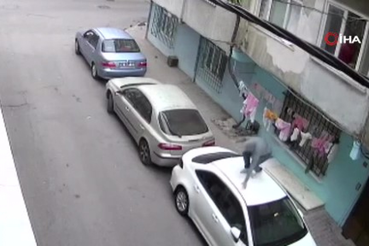 Zanlıların hırsızlık anları da kameralara yansıdı. Görüntülerde 2 şüpheli şahsın hırsızlık yapacakları evin önünde bir süre gözlem yapıyor. Ardından zanlılardan biri hırsızlık için harekete geçiyor. Bir zanlı, arkadaşının yardımıyla ikinci kattaki evin balkonuna tırmanıyor. Eve giren zanlı bir süre sonra yakalanacağını anlayınca camdan bir otomobilin tavanına atlayarak olay yerinden kaçıyor.