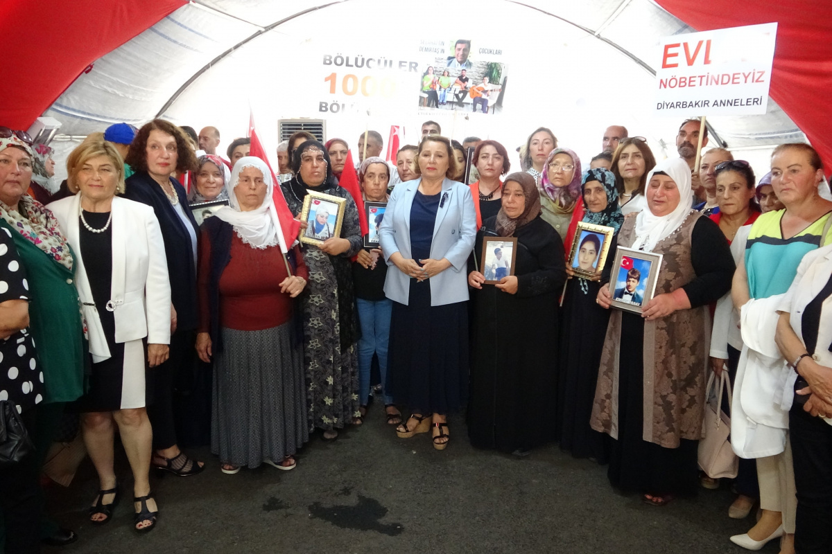 Çocuklarının bölücü terör örgütü PKK mensupları tarafından kaçırıldığı iddiasıyla 3 Eylül 2019’da farklı kentlerden Diyarbakır’a gelen ailelerin HDP il binası önünde başlatılan oturma eylemi bin 22. gününde. Ailelerin direnişine bir destek de farklı illerde bir araya gelen Kadın Muhtarlar Derneği’nden geldi. Bir gurup halinde aileleri ziyaret eden muhtarlar, ailelerle tek tek görüştü, gözyaşlarına hakim olamadı. Heyet adına açıklamalarda bulunan Kadın Muhtarlar Derneği Başkanı Serpil Erenoğlu, terör örgütünü kınadığını kaydetti.