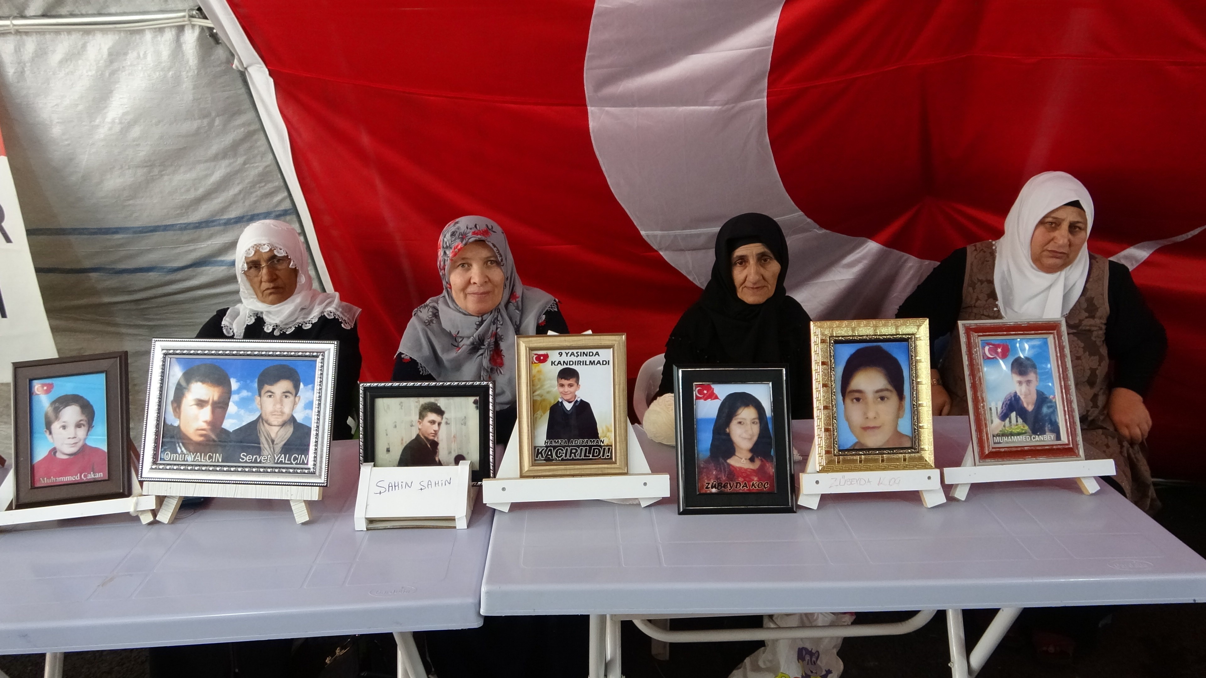 Çocuklarının bölücü terör örgütü PKK mensupları tarafından kaçırıldığı iddiasıyla 3 Eylül 2019’da farklı kentlerden Diyarbakır’a gelen ailelerin HDP İl binası önünde başlattıkları oturma eylemi bin 29’uncu gününde. 8 yıl önce 23 yaşındayken kızı Hatun Çiçek’in dağa kaçırıldığını ileri sürerek oturma eylemine katılan Nihan Çiçek (57), kızının hasretiyle yandığını söyledi. Bir an önce kızına kavuşmak istediğini ifade eden anne Çiçek, “Kızımızı HDP’den istiyoruz, HDP kızlarımızı çaldı. Utansaydılar kız çocuklarını dağa kaldırmazlardı. Kızımı kapı komşum kandırdı. 4 defa yaralı olduğu zaman aradı, konuştum. Kaç gel dedim, işaret yaparak arkasında olduklarını, sesinin onlara giderse öldüreceklerini söyledi. Beni görüyorsa onu çok özlemişim, kızım gelsin, beni görüyorsa kaçıp teslim olsun. Sen gelmeyene kadar buradan kalkmayacağım” dedi.