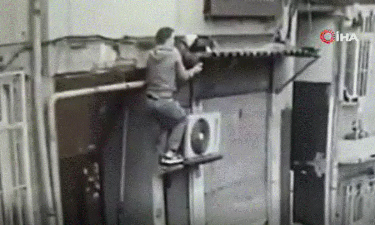 Güvenlik kamerasında yansıyan görüntülerde iki hırsızdan birinin eğildiği diğerinin de sırtına basıp klima motorunun üzerinden kata girdikleri görülüyor. Kata giren hırsızlar cep telefonlarını 4 dakikada çalıp kayıplara karışıyor.