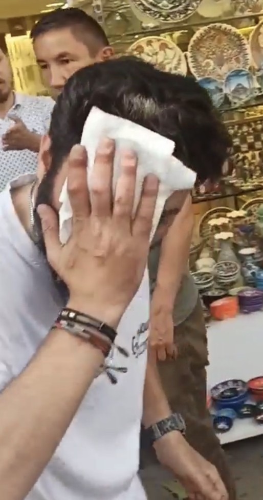 Yaşanan olayı anlatan cadde esnafı Gökhan İlkel, “Sabahtan itibaren çatıdaki demirleri sökmeye başlamışlardı. Tek tek söküp aşağı atıyorlardı. Biz de esnaf arkadaşlar olarak uyarmıştık. Çok toz kalkıyor, gündüz olacak iş değil diye uyarmıştık. Dinlemediler, sonuç olarak. Ben de içeride oturuyordum. Bu taraftan demirin geldiğini gördüm. Burada motorcu bir arkadaş vardı. Arkadaşın başı tam çöp kovasının demirine çarptı. Başı kanadı, ona müdahale ettik. Arkadaşı gönderdik, durum bu” dedi.