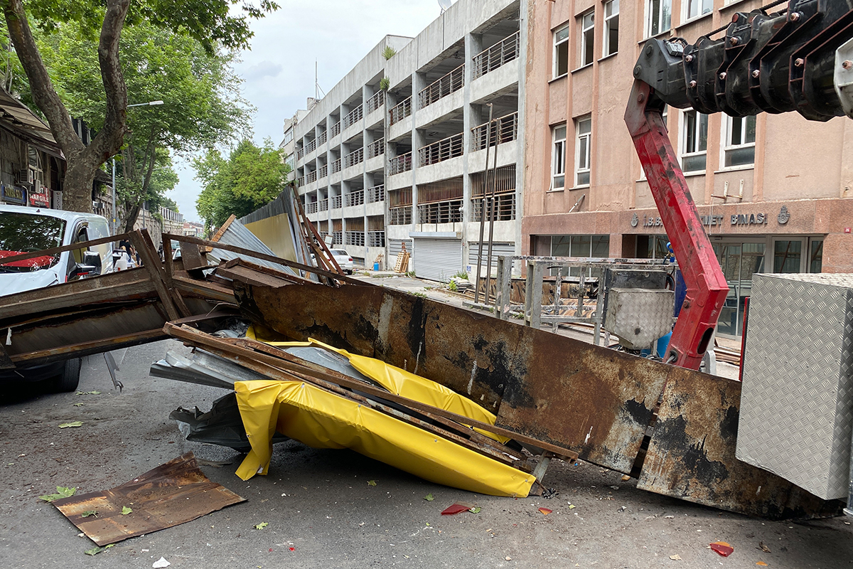 Fatih’te eski İBB ek hizmet binasının yıkımında yola demir parça düştü: 1 yaralı