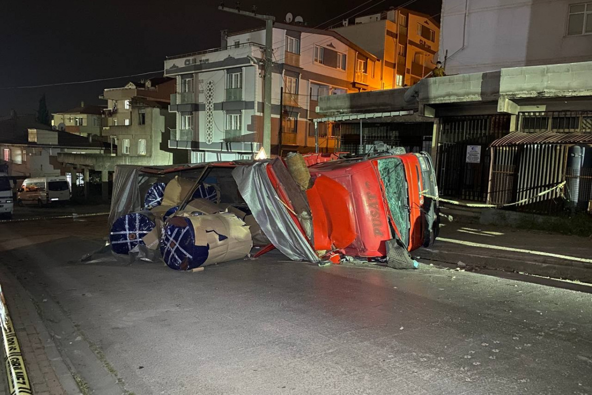 Kaza, Gebze ilçesi İstasyon Mahallesi Birlik Caddesi üzerinde meydana geldi. Edinilen bilgiye göre, Serdar B. idaresindeki 35 AVA 260 plakalı halat yüklü kamyon, cadde üzerinde yokuş aşağı inerken bir anda freni boşaldı. Sürücüsünün direksiyon hakimiyetini kaybettiği kamyon, bakkalın önünde bulunan kamelyaya çarparak yan yattı. O sırada kamelyada oturan baba Halis T., kızları Reyhan T. ve Ayşegül T. ile kamyon sürücüsü Serdar B. yaralandı. Kazayı görenler durumu 112 Acil Çağrı Merkezi’ne bildirdi. İhbar üzerine adrese çok sayıda itfaiye, sağlık ve polis ekibi sevk edildi. Kısa sürede adrese ulaşan sağlık ekipleri, yaralılara ilk müdahaleyi olay yerinde yaptı. Sokak ise tedbir amaçlı trafiğe kapatıldı. Ambulanslara alınan yaralılar, tedavi edilmek üzere çevredeki hastanelere kaldırıldı. Yaralılardan Ayşegül T. ve kamyon sürücüsü Serdar B.’nin durumunun ağır olduğu öğrenildi. Polis, kazayla ilgili inceleme başlattı.