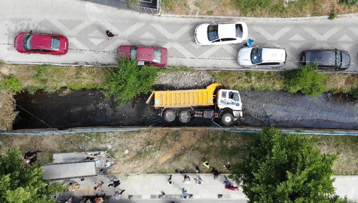 Durakta bekleyen vatandaşların son anda kaçışmaları muhtemel bir faciayı önlerken, kanala uçan kamyondan şoför son anda atlayarak kazadan burnu kanamadan kurtuldu. İhbar üzerine olay yerine polis ve itfaiye ekipleri sevk edildi. Olay yerine gelen polis ekipleri çevrede güvenlik önlemi alırken, itfaiye ekipleri kanala uçan kamyonette tedbir amaçlı inceleme yaptı. Kaza sonrası mahalle sakinleri sokağa döküldü. Polis ekipleri kazayla ilgili inceleme başlattı. Öte yandan kanala uçan hafriyat kamyonu havadan görüntülendi.