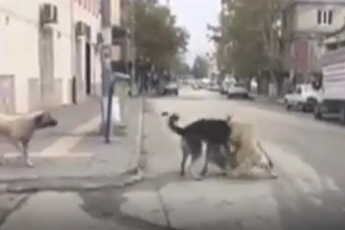 Nurdağı ilçesi Nurten Öztürk Ortaokulu çevresinde ise başıboş köpeklerin dalaşı ise cep telefonu ile görüntülendi. Köpeklerin sokak ortasındaki dalaşı çevreden geçen bir aracın sürücü tarafından anbean kaydedildi.