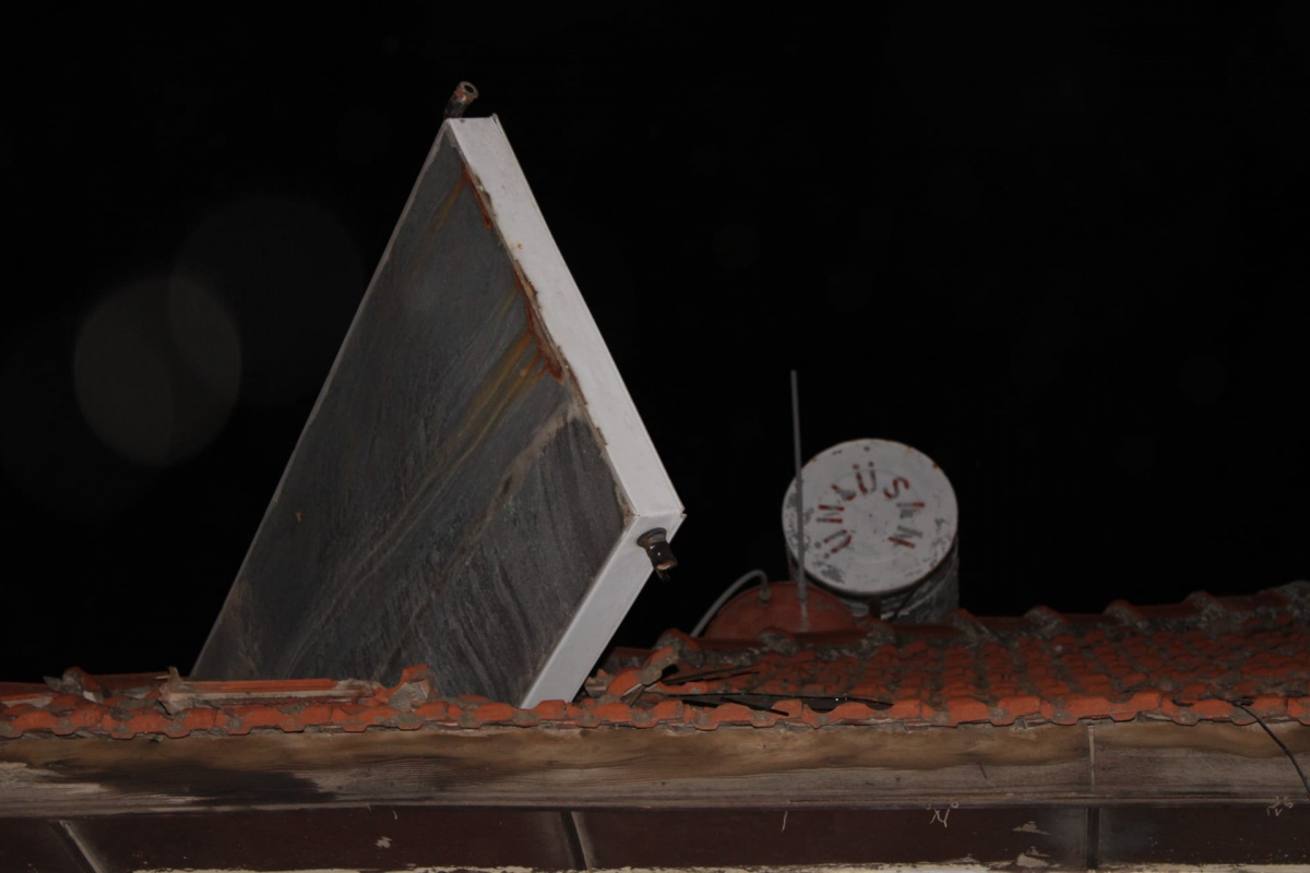 Aydın’da akşam saatlerinde etkili olan şiddetli rüzgar fırtınaya dönüşerek hayatı olumsuz etkiledi. Fırtına nedeniyle birçok yerde ağaç devrilmeleri yaşanırken, bazı evlerin çatılarında da hasar meydana geldi. Fırtınanın şiddetini gözler önüne seren ise bir evin çatısına saplanan güneş enerjisi paneli oldu. Zeybek Mahallesi 1547 sokak üzerinde yer alan iki katlı evin çatısında bulunan güneş enerjisi paneli fırtınanın şiddetine dayanamayıp, aynı sokakta boş durumda bulunan tek katlı evin çatısına ok gibi saplandı. Bölgeye gelen itfaiye ekipleri çatıya saplanan paneli çıkararak yere indirdi. Mahalle sakinleri çatıya saplanan güneş enerjisine bakıp, şaşkınlıklarını gizleyemezken, olayda herhangi bir yaralanma olmaması teselli kaynağı oldu.
