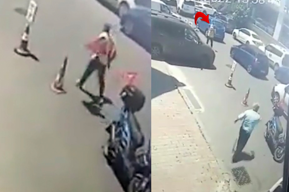 Yaşanan o anlar güvenlik kameraları tarafından saniye saniye kaydedildi. Görüntülerde, yabancı uyruklu kişinin motosikletin üzerinde bulunan bayrağı aldığı görülüyor. Daha sonra kendisine tepki gösteren güvenlik görevlisinin üzerine bıçakla geliyor. Eline sopa alan güvenlik görevlisi adam, şüpheliyi kovalıyor.
