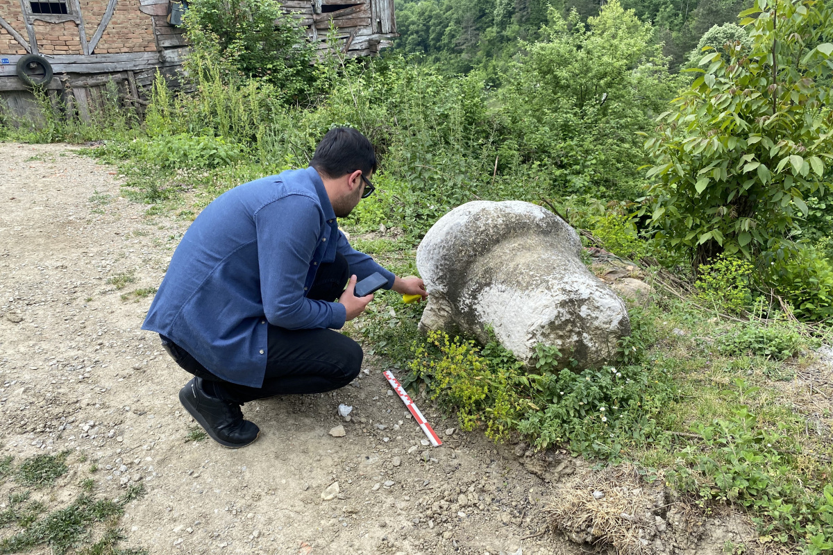Bartın’ın Ulus ilçesine bağlı Aşağıdere köyünde meydana gelen heyelan sonrası bölgede yol açma ve toprak yığınlarının kaldırılması için çalışma başlatıldı. İl Özel İdaresi ekiplerince iş makineleri ile yürütülen çalışmalar sırasında toprak içerisinde çapı yarım metre, uzunluğu bir metre ebatlarında olan kireç taşından yapılmış obje bulundu. Yetkililere haber verilmesi üzerine Amasra Müze Müdürlüğüne bağlı ekiplerce tarihi eser olduğu değerlendirilen obje yerinde incelendi.