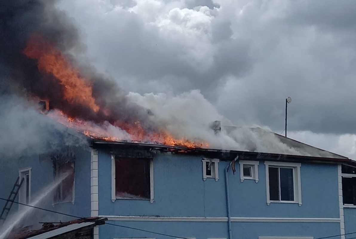 İki katlı evin çatısı alevlere teslim oldu