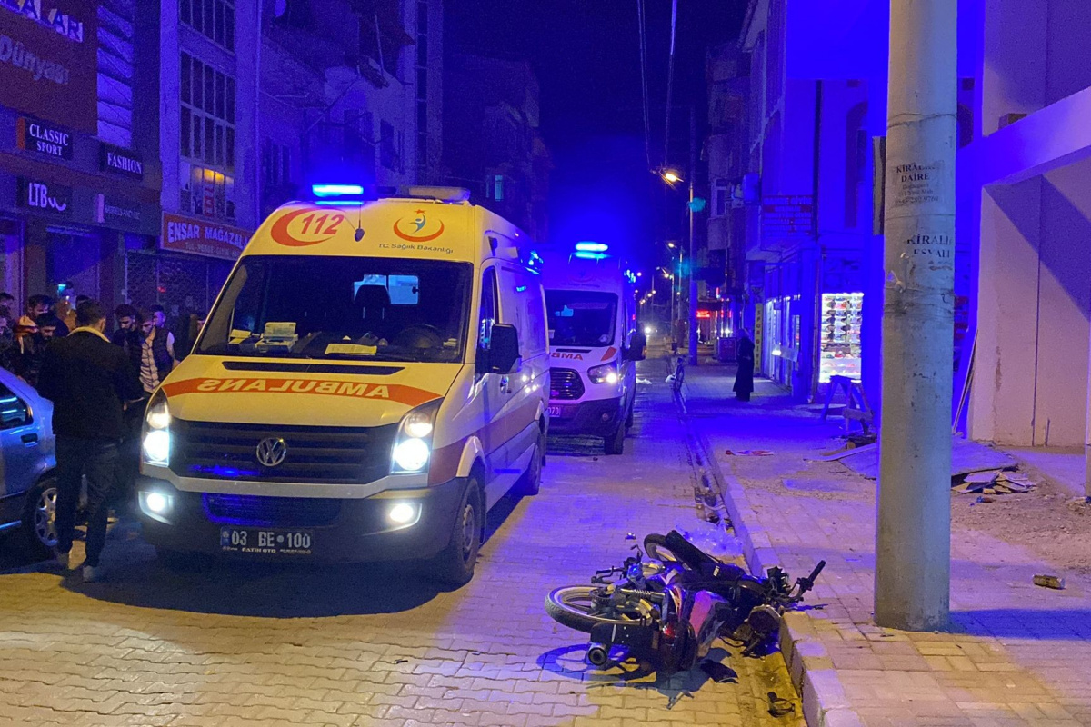 Kaza, Bolvadin ilçesi Alaca mahallesi İstasyon caddesinde gece geç saatlerde meydana geldi. Edinilen bilgilere göre, Ş.S. ve S.İ.’nin üzerinde olduğu motosiklet ile karşı yönden gelen ve plakası olmayan İ.S. ve F.C.’yi taşıyan motosiklet çarpıştı. Çarpışmanın etkisi ile motosikletlerin üzerinde bulunan şahıslar yola düştü. Çevredekilerin haber vermesi ile olay yerine polis ve 112 Acil servis ekipleri sevk edildi. Bölgeye gelen sağlık ekipleri yerde yatan yaralıları ambulanslar ile Bolvadin Devlet Hastanesi’ne kaldırdı. Kazanın ardından polis tarafından inceleme başlatılırken, motosikletleri kimlerin kullandığının tespitinin ise alınan ifadelerden sonra ortaya çıkacağı kaydedildi.