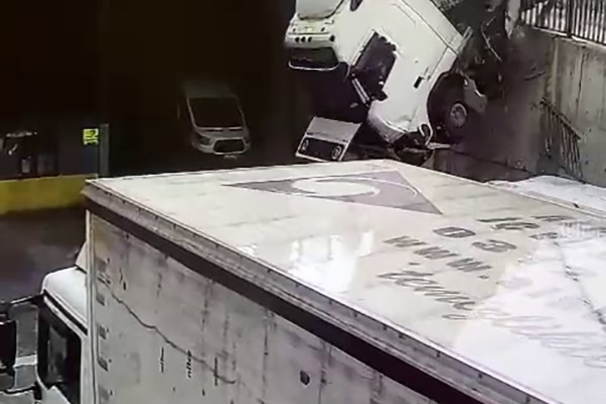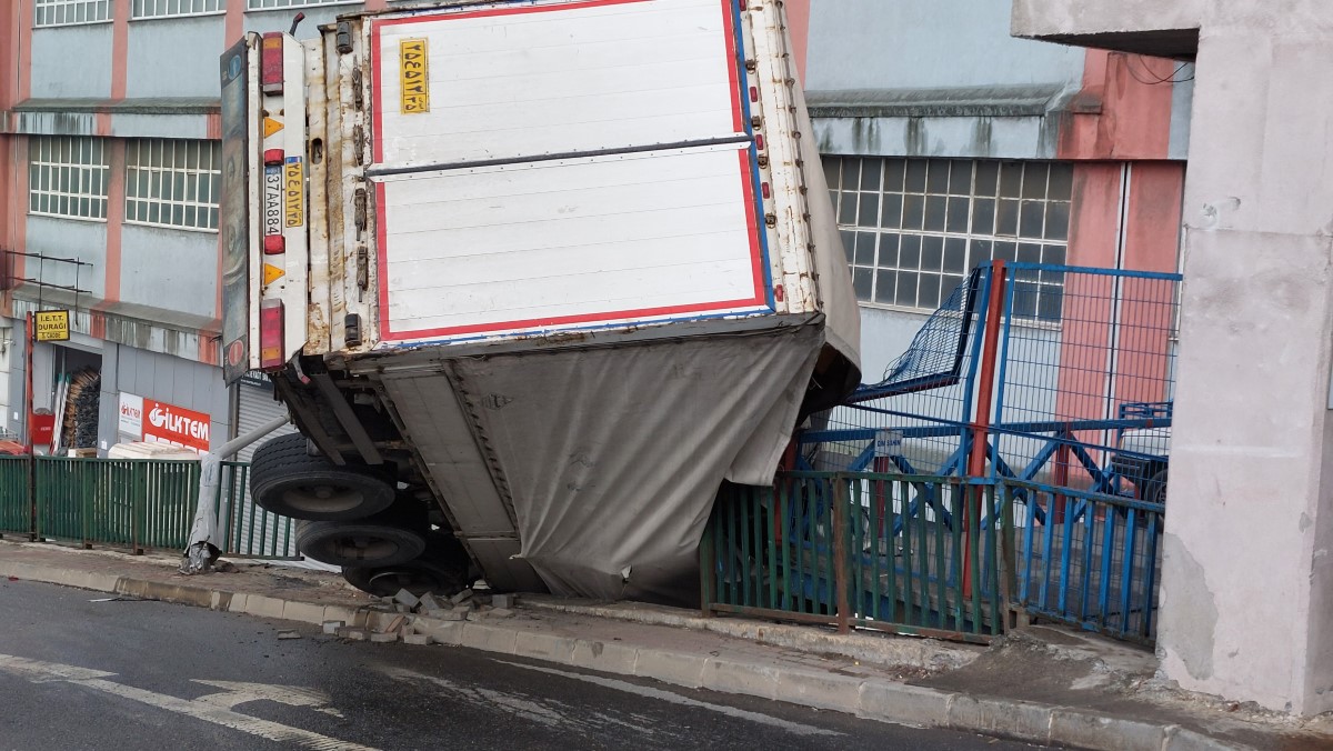 Edinilen bilgiye göre kaza saat 16.30 sıralarında İkitelli Organize Sanayi Bölgesi 5. Cadde’de meydana geldi. Yokuş aşağı inerken kavşakta dönüş yapan tır, sürücü Yakup Vefai’nin kontrolünden çıktı. Direksiyon hakimiyetini kaybeden İran uyruklu sürücü, yol kenarındaki korkulukları yaklaşık 10 metreden bir iş yerinin bahçesine uçtu. Faciadan dönülen kazada tır sürücü hafif şekilde yaralandı. Yaralı sürücü ambulansta ayakta tedavi edilirken, kaza anı ise güvenlik kamerasına saniye saniye yansıdı.