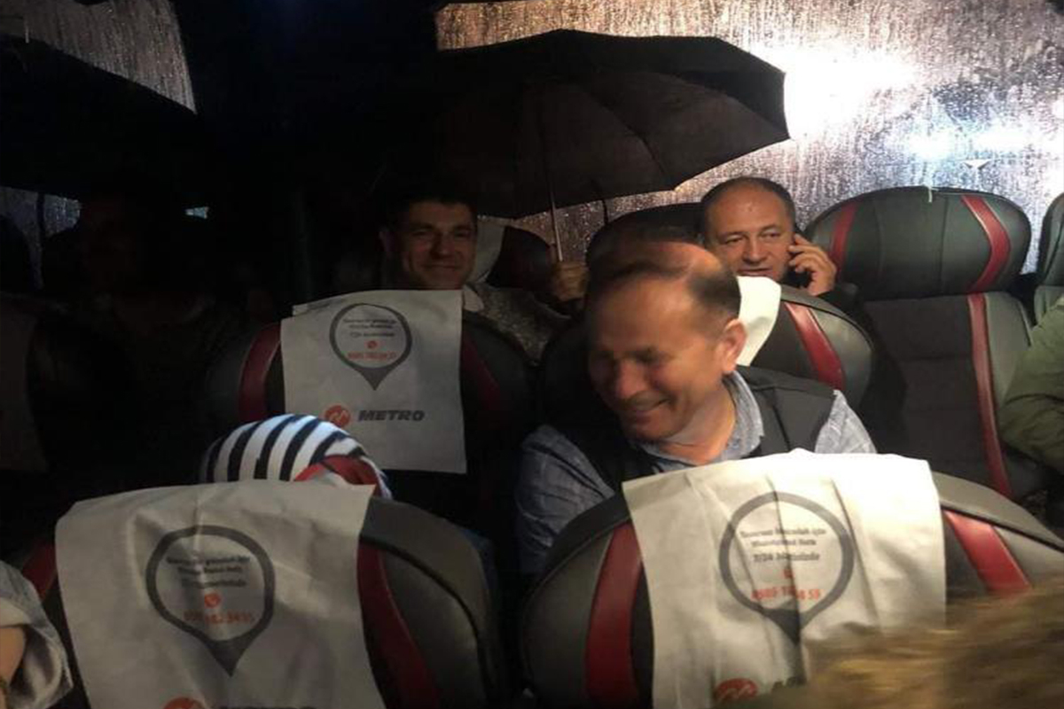 Dün akşam İstanbul ve çevresini etkisi altına alan yağmur, İstanbul-Bursa seferini yapan Metro Turizm otobüsünde de etkili oldu. Otobüs tavanın su akıtması nedeniyle vatandaşlar şemsiye ile yolculuk yapmak zorunda kaldı. Tavanın su akıtması dışında otobüsün yolcuk esnasında arıza yaptığı vatandaşlar tarafından belirtildi.Olaya ilişkin paylaşılan fotoğrafta vatandaşların otobüs içerisinde ıslanmamak için şemsiye açtıkları görüldü.