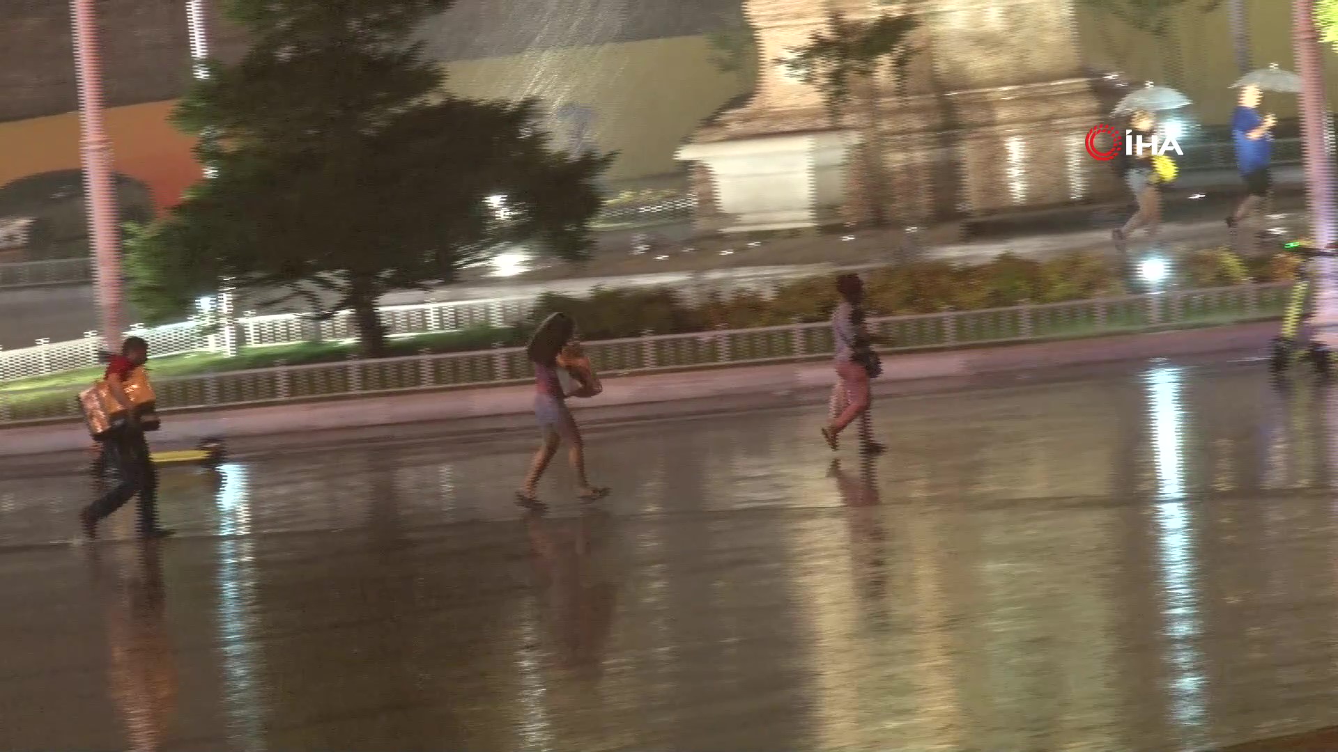 Bayram tatilinde Taksim’e giden vatandaşlar yağışa hazırlıksız yakalandı. Yağışın şiddetlenmesi ile birlikte vatandaşların ıslanmamak ve evlerine gitmek için koşuşturduğu görüldü.