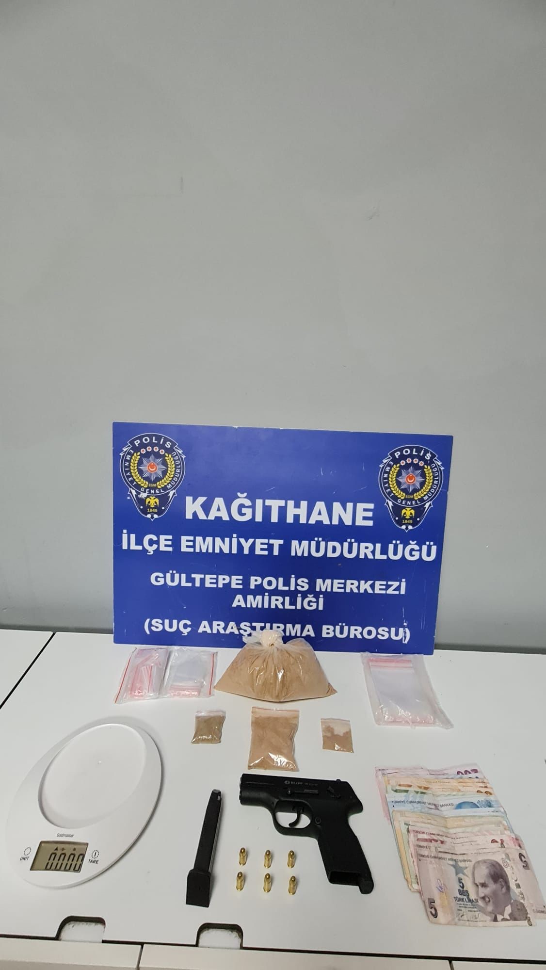 Evde yapılan arama yapan Kağıthane polisi, 922 gram eroin, ruhsatsız tabanca, hassas terazi, 4 bin 100 lira ve uyuşturucu paketlemede kullanılan çok sayıda poşet ele geçirdi. Gözaltına alınan şüphelilerden Mazlum T. ve Münür A., ‘Uyuşturucu veya uyarıcı madde imal ve ticareti’ suçundan tutuklanırken, Behçet T. ise adli kontrol şartıyla serbest bırakıldı.