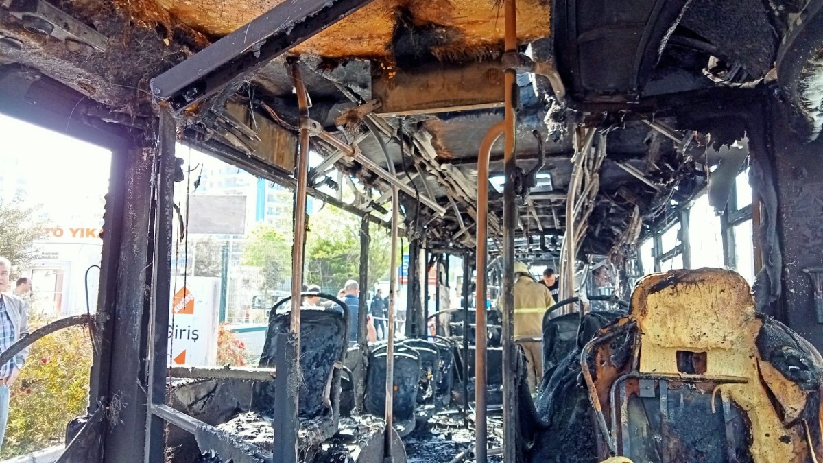 Otobüsün arka kısmında çıkan yangın kısa sürede büyüyerek bütün otobüsü sardı. İtfaiye ekipleri alev topuna dönen otobüsteki yangını söndürürken, otobüs kullanılmaz hale geldi.