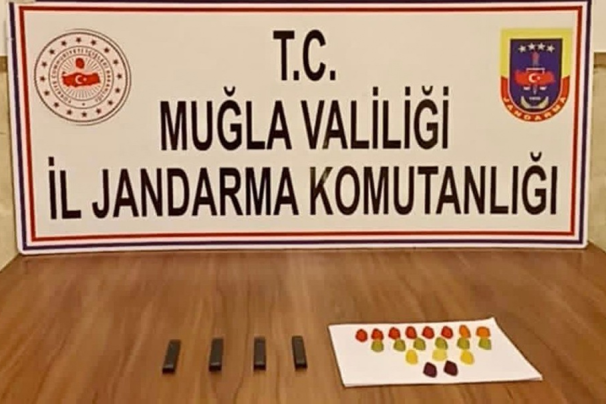 Uyuşturucu madde imal ve ticareti ile mücadele çerçevesinde Muğla İl Jandarma Komutanlığı tarafından yapılan çalışmalar aralıksız olarak sürüyor. Edinilen bilgiye göre, 06 KA plakalı araç ile Fethiye ilçesine gelecek olan Y.Ç. isimli şahsın il dışından uyuşturucu madde getireceği istihbaratını alan Fethiye İlçe Jandarma Komutanlığı ekipleri aracı takibe aldı. Göcek Mahallesi girişinde durdurulan araçta uyuşturucu madde arama köpeği ile yapılan arama sonucu valiz içerisinde kıyafetlerin arasında 25 ml.lik 4 tüp 100 ml. likit esrar, 20 adet uyuşturucu madde zerk edilmiş jelibon türü şeker ele geçirildi. Uyuşturucu tacirlerinin yeni taktiği jandarmayı bile şaşırtırken uyuşturucu şekerlerle birlikte 2 kişi gözaltına alındı.