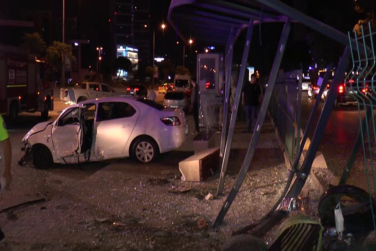 Kadıköy’de otomobil otobüs durağına daldı: 1’i ağır 5 yaralı