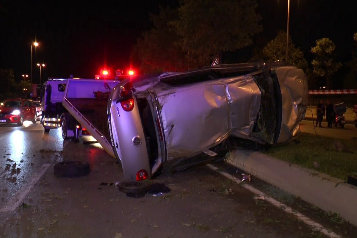 Kartal’da kontrolden çıkan otomobil ağaca çarparak takla attı: 1’i ağır 2 yaralı