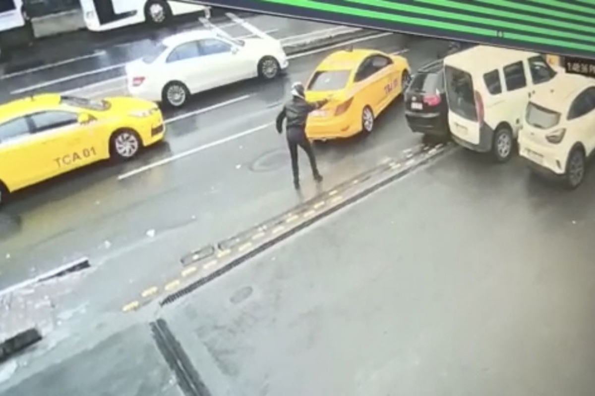 Ticari taksiyi siper gibi kullandı, hasmına ateş edip kaçtı